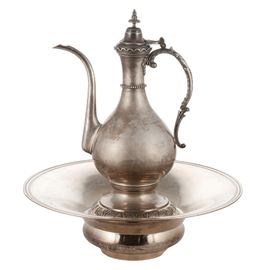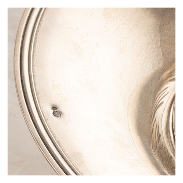 h. 50 cm. - d. 40,5 cm.pyriform plain body with a plain surface, decorated with naturalistic motifs, shaped handle, circular basin, defects, gross weight 3300 gr