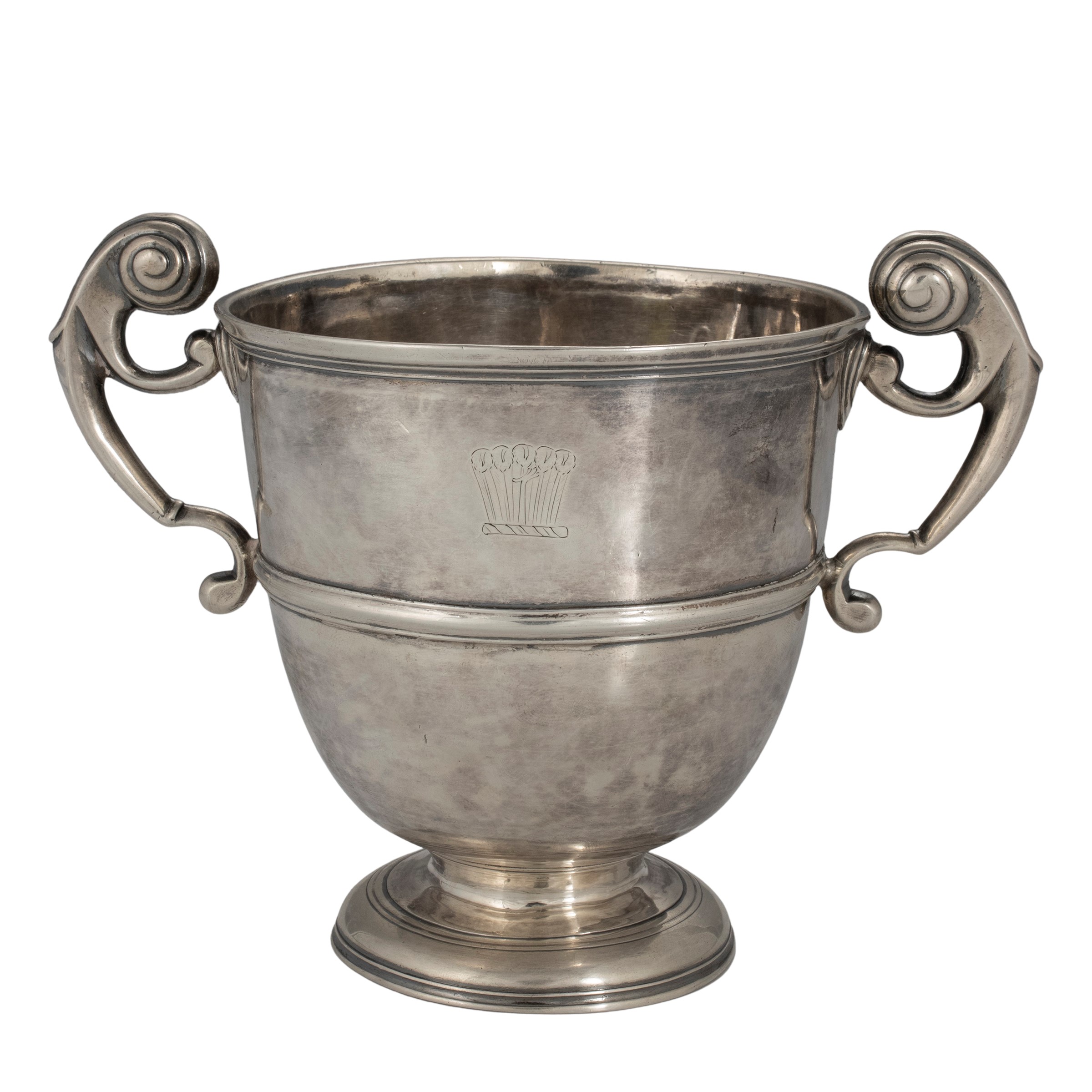 plain body on a circular base, volute shaped handles, weight 320 gr. wears