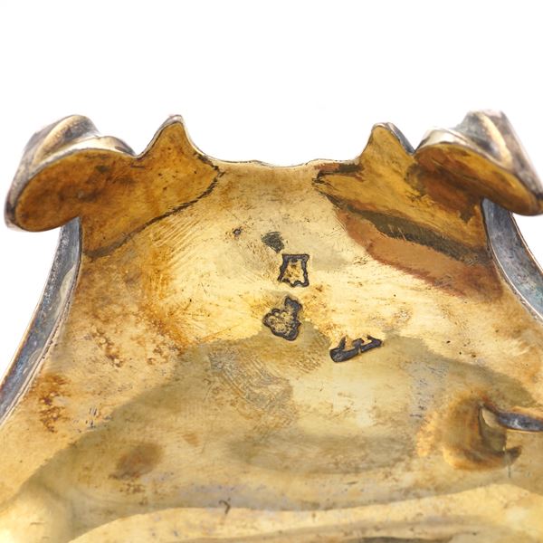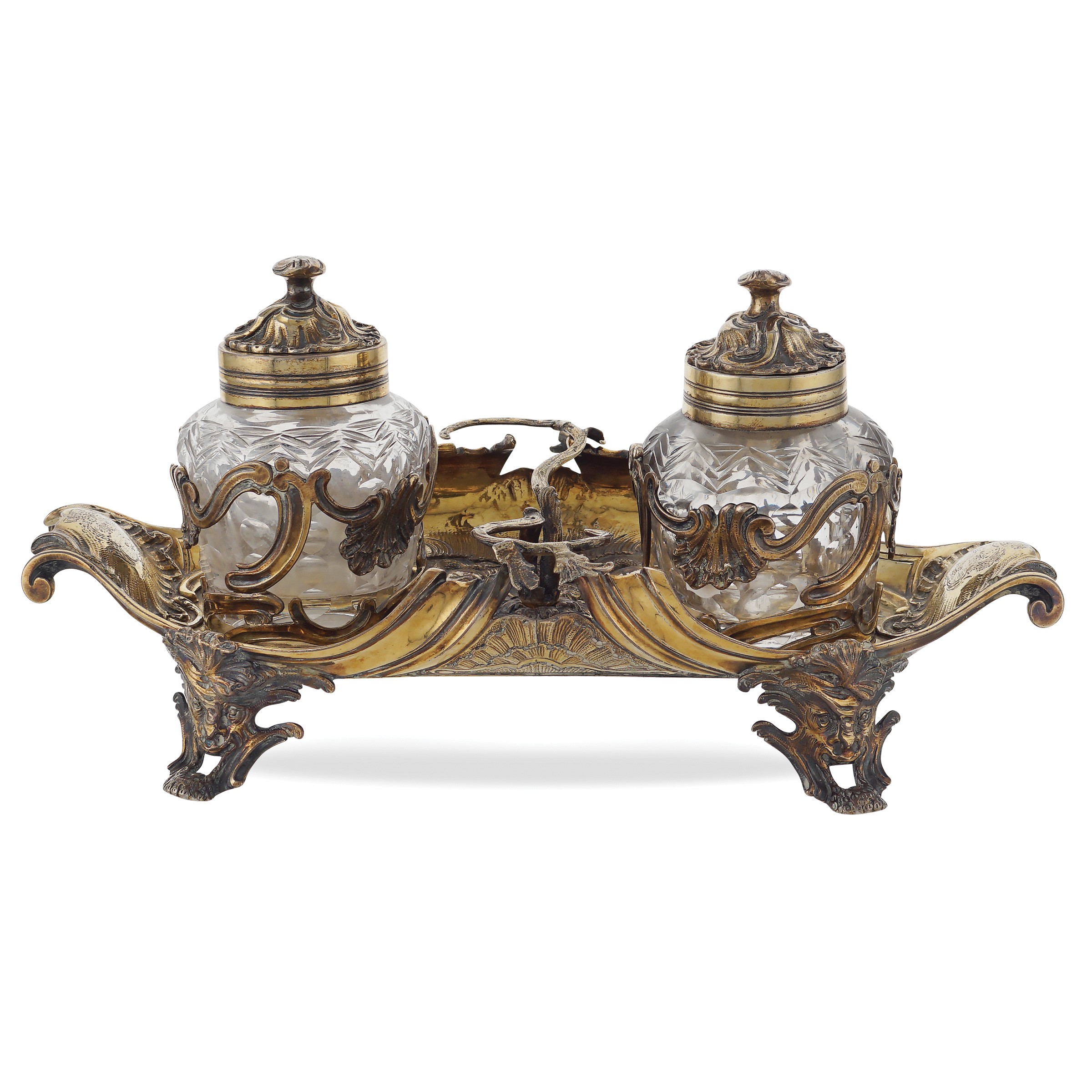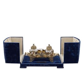 Vermeil silver inkwell with two crystal ampoules