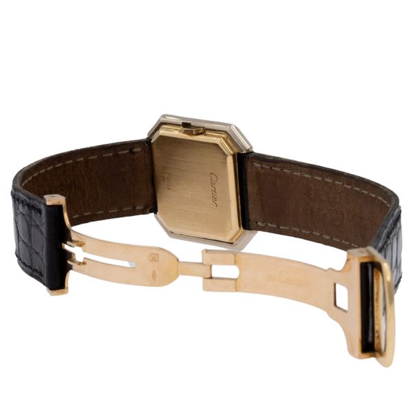 18kt two color gold, ref. W4598 - 782080061, 26x26 mm. carré case, white dial with Roman numerals, mechanical movement with manual winding, caliber 2512, original strap with 18kt yellow gold deployant closure, 18 cm length. signed case, dial and movement