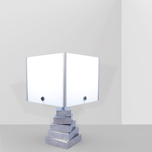 chromed metal and perspex table lamp, slight wears