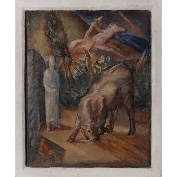 46.5x38.5x4.5 cm.encaustic on terracotta, signed lower center, restoration Provenance: Private collection, Rome Bibliography: B. Mantura, M. Quesada, "Ferruccio Ferrazzi dal 1916 al 1946", catalogo della mostra, Palazzo Rosari Spada, Spoleto, De Luca Edizioni d'Arte, Roma 1989, p. 112, ill. 3. Restoration
