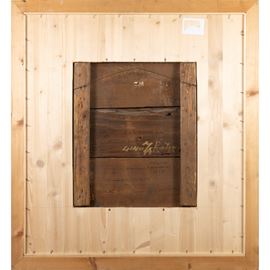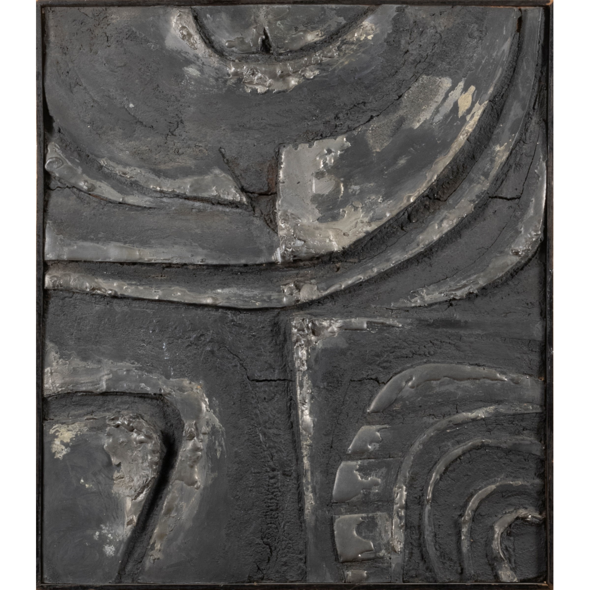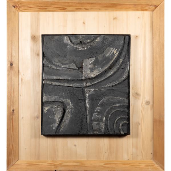 47x41.5 cm.bas-relief in concrete and tin on panel, signed, dated and titled on the back, within a frame
