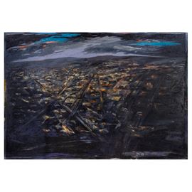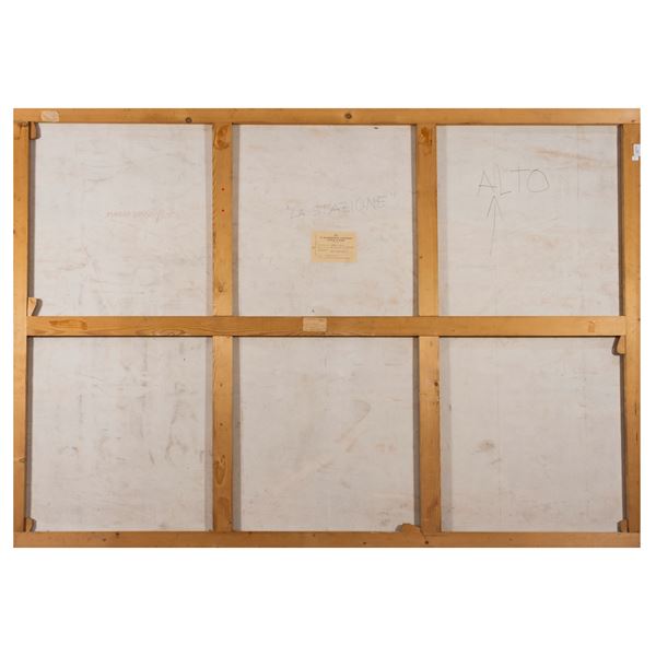 200x280 cm.oil on canvas, signed, dated and titled on the back Provenance: Private collection, Rome Exhibitions: XI National Quadrennial of Art in Rome, 1986 Literature: Mario Sasso, "Pictogrammi-videogrammi", a cura di Vittorio Fagone, edizione carte segrete, pag. 42