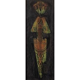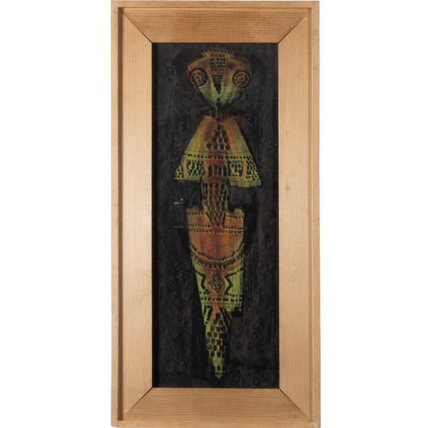 47.5x18 cm.frottage with waxy oil pastel on paper, within a frame