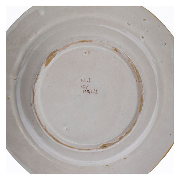 Polychrome ceramic plates, production brand, slight defects, comprising: 8 flat plates d. 25.5 cm. 8 soup plates d. 25.5 cm.
