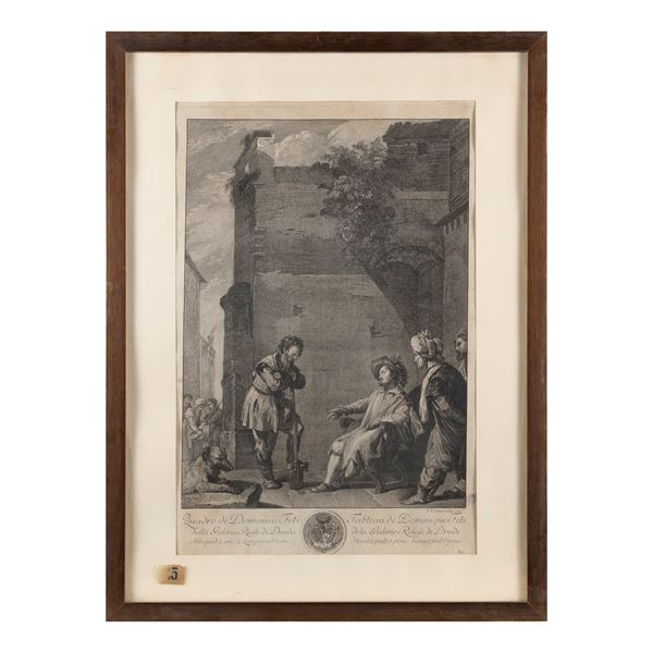 44.5x29.5 cm."La parabola del fattore infedele", engraving, within frame