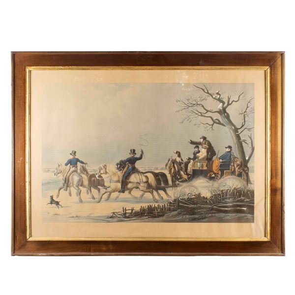 56x80 cm."Winter hunting scene", within frame