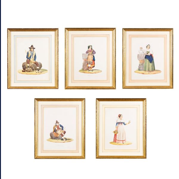 30x23 cm.depicting traditional 19th century costumes, within frames