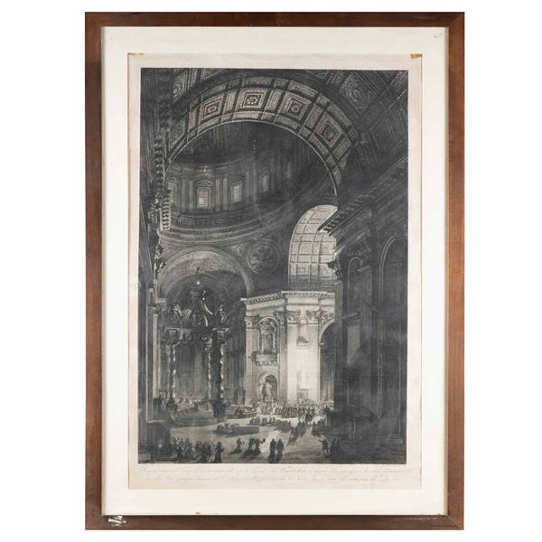 "Interior of the Basilica of San Pietro", engraving, within frame