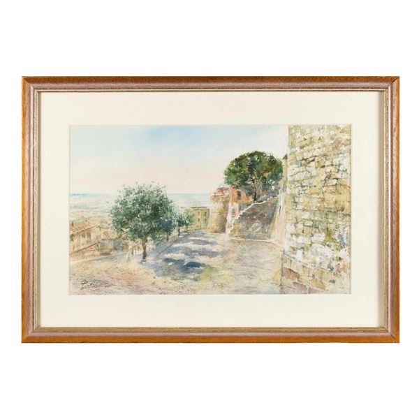 57.5x39.5"Lanuvio, via della Libertà", 2007, watercolor on paper, signed lower left, within frame