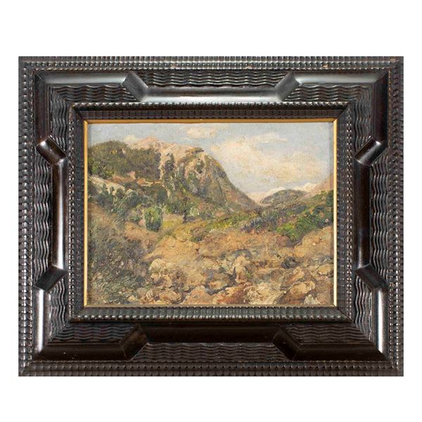 "Mountain landscape", oil on plywood, signed at the bottom right, within frame