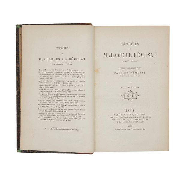 "Memoires de Madame de Rémusat", Calmann Lévy, Paris edition, 3 Volumes