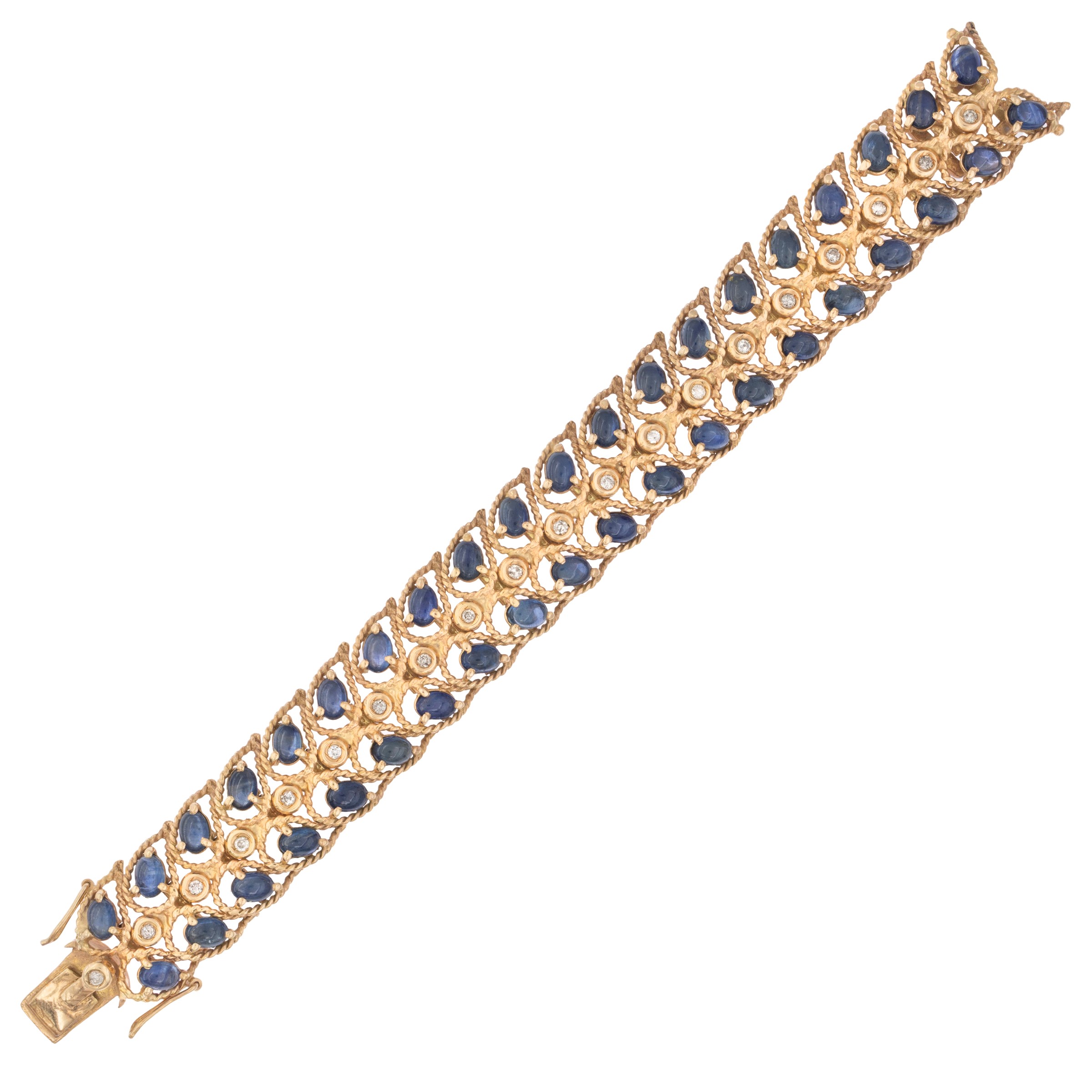 weight 49 gr.cabochon-cut sapphires circa 9 ct alternating with brilliant-cut diamonds circa 0.40 ct, hidden clasp, length 18 cm.