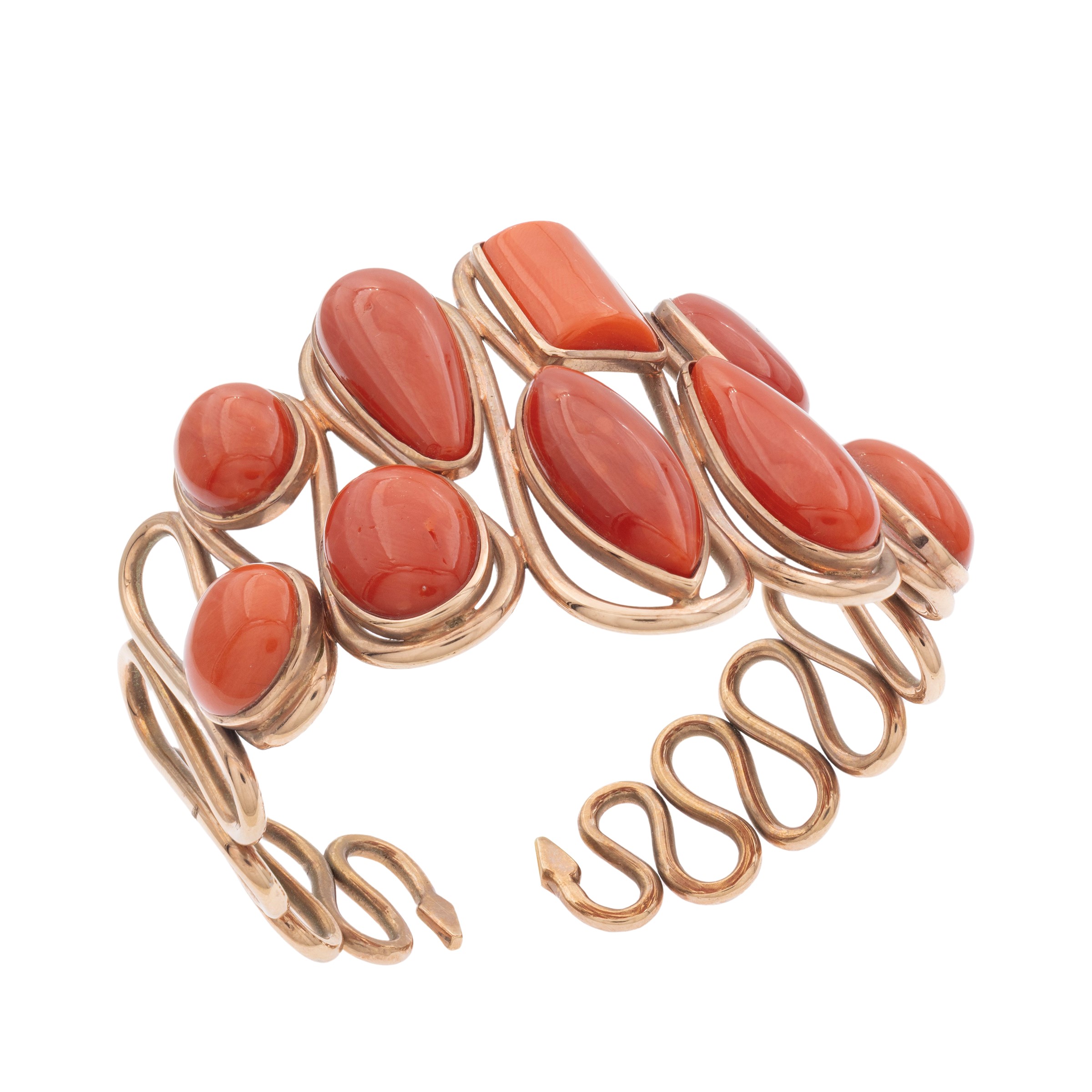 18kt red gold and coral cuff bracelet