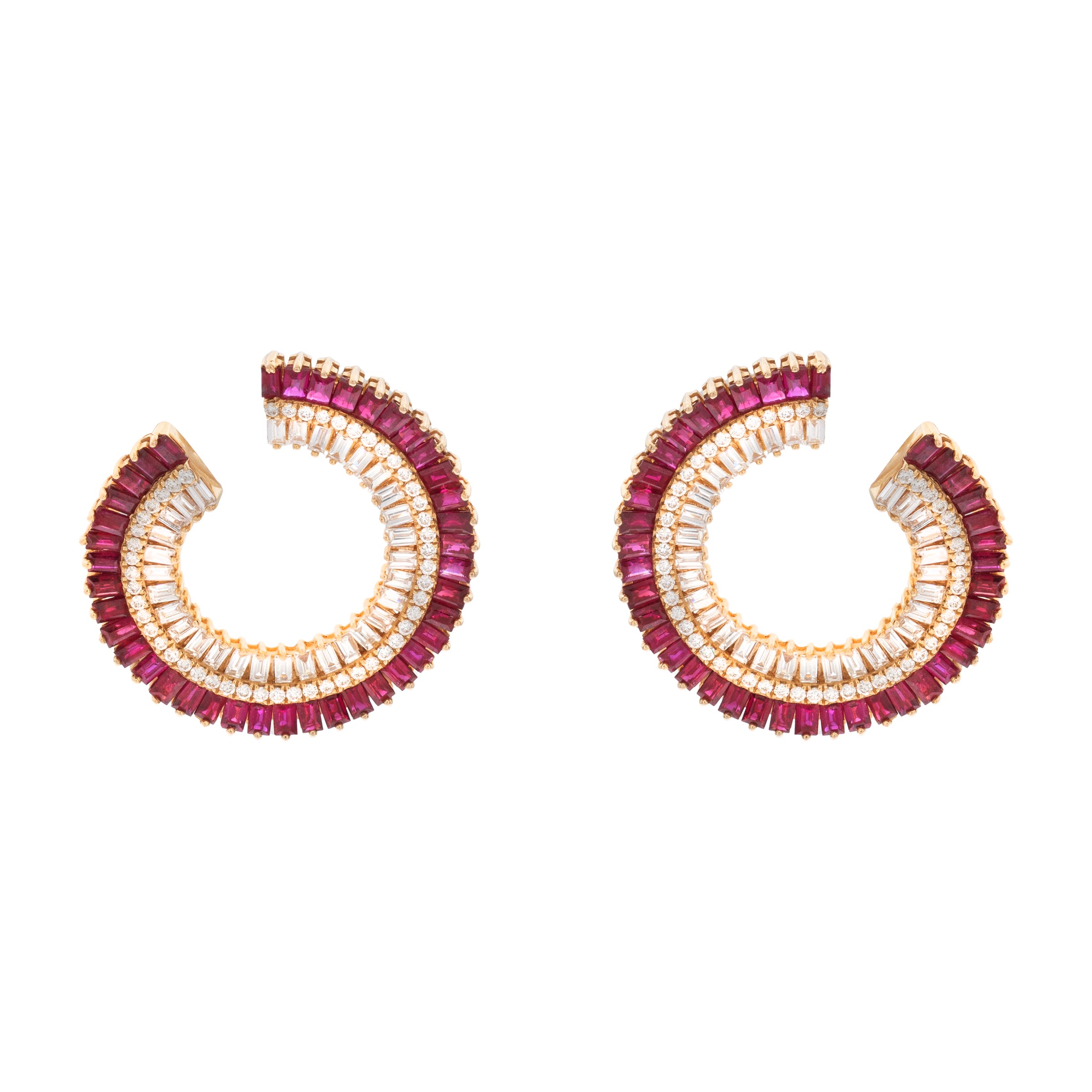baguette and brilliant cut diamonds circa 4 ct, baguette cut rubies circa 4 ct, diameter 2.7 cm.