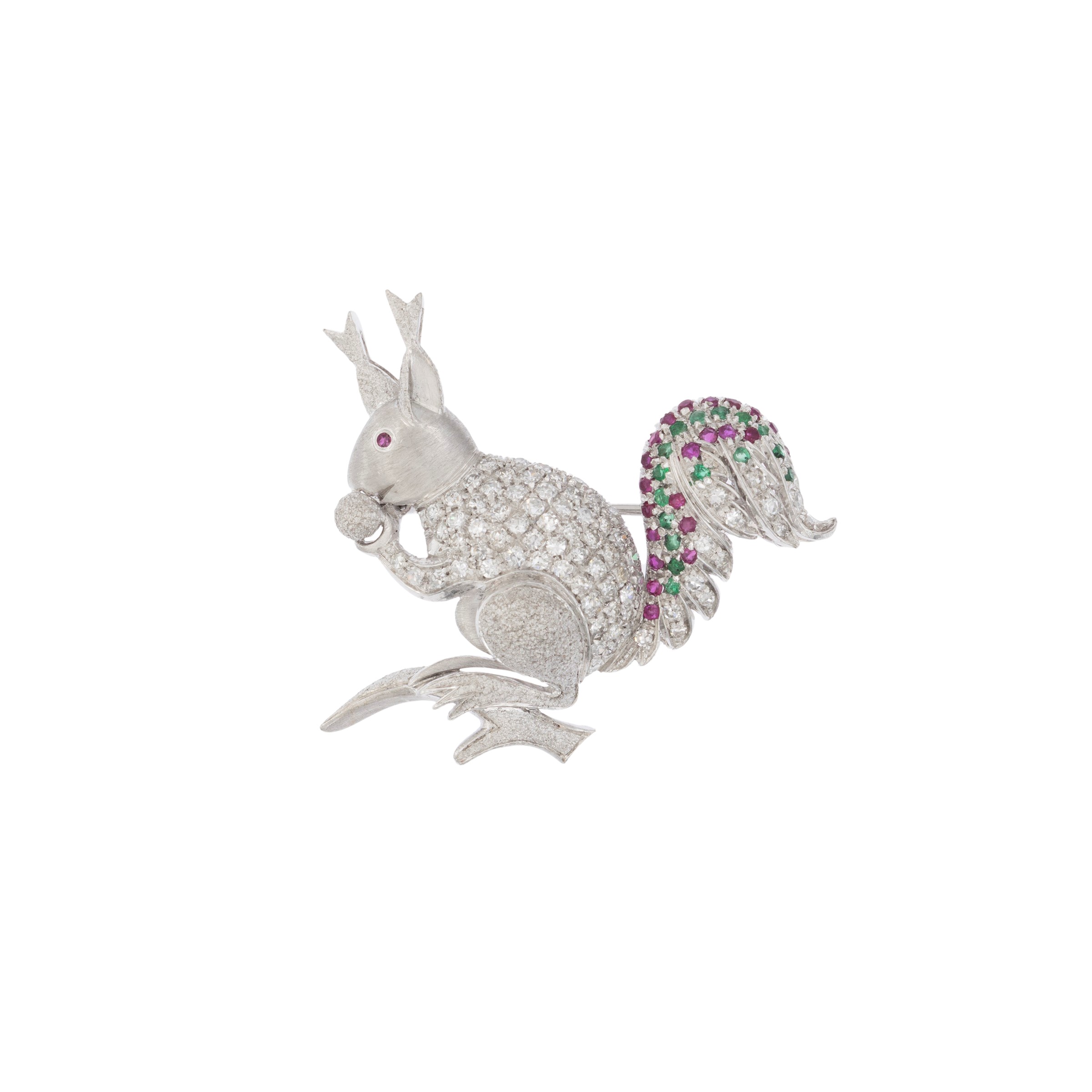 weight 14 g.brilliant cut diamonds 0.50 ct, round rubies and emeralds, dimensions 3.8x4 cm.