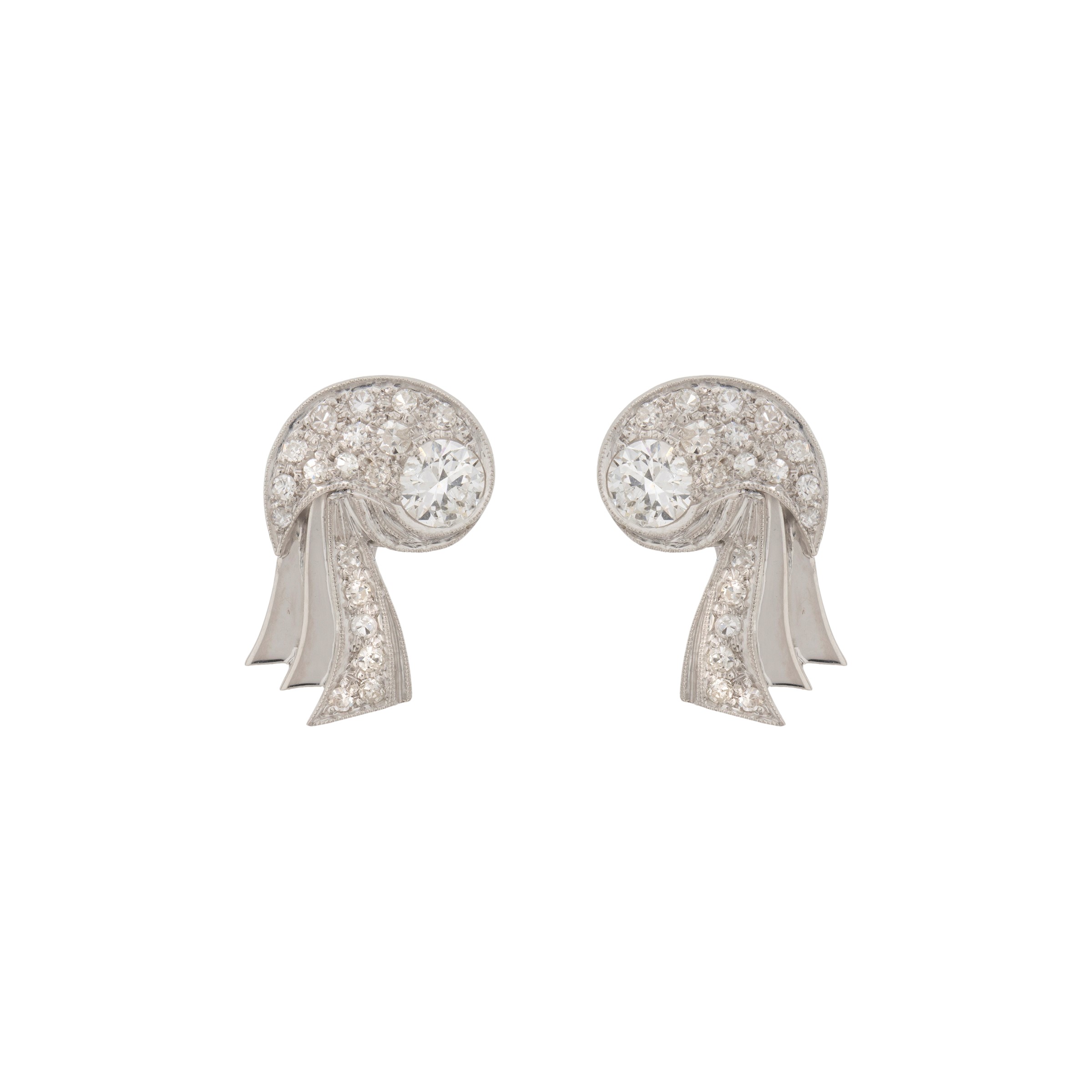 weight 7 g.one old mine cut and one brilliant cut circa 0.60 ct, other brilliant cut diamonds circa 0.50 ct, dimensions 1.9x1.2 cm.