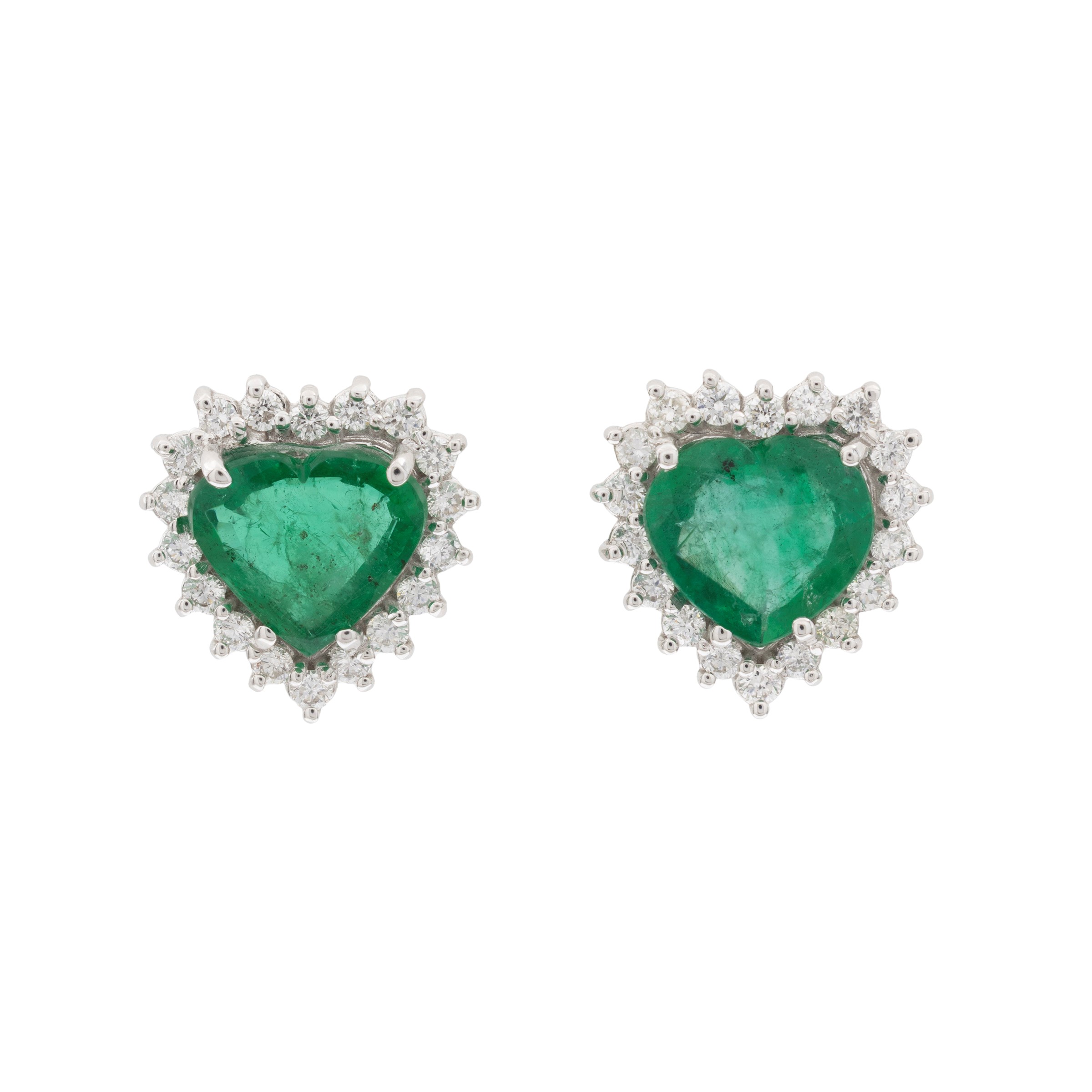 18kt white gold lobe earrings with two heart-shaped emeralds