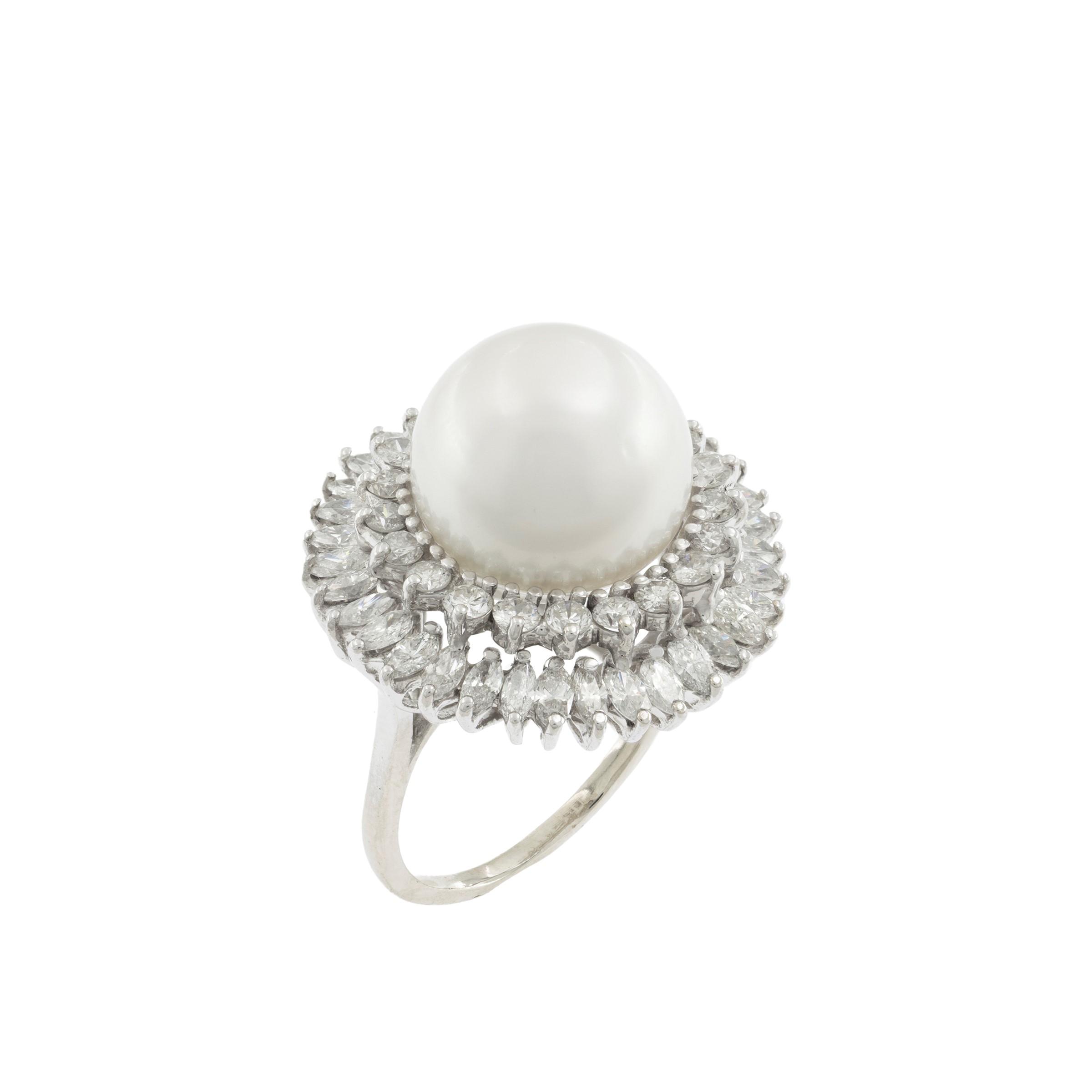 pearl circa 14 mm., brilliant and marquise cut diamonds circa 2.50 ct, size 18