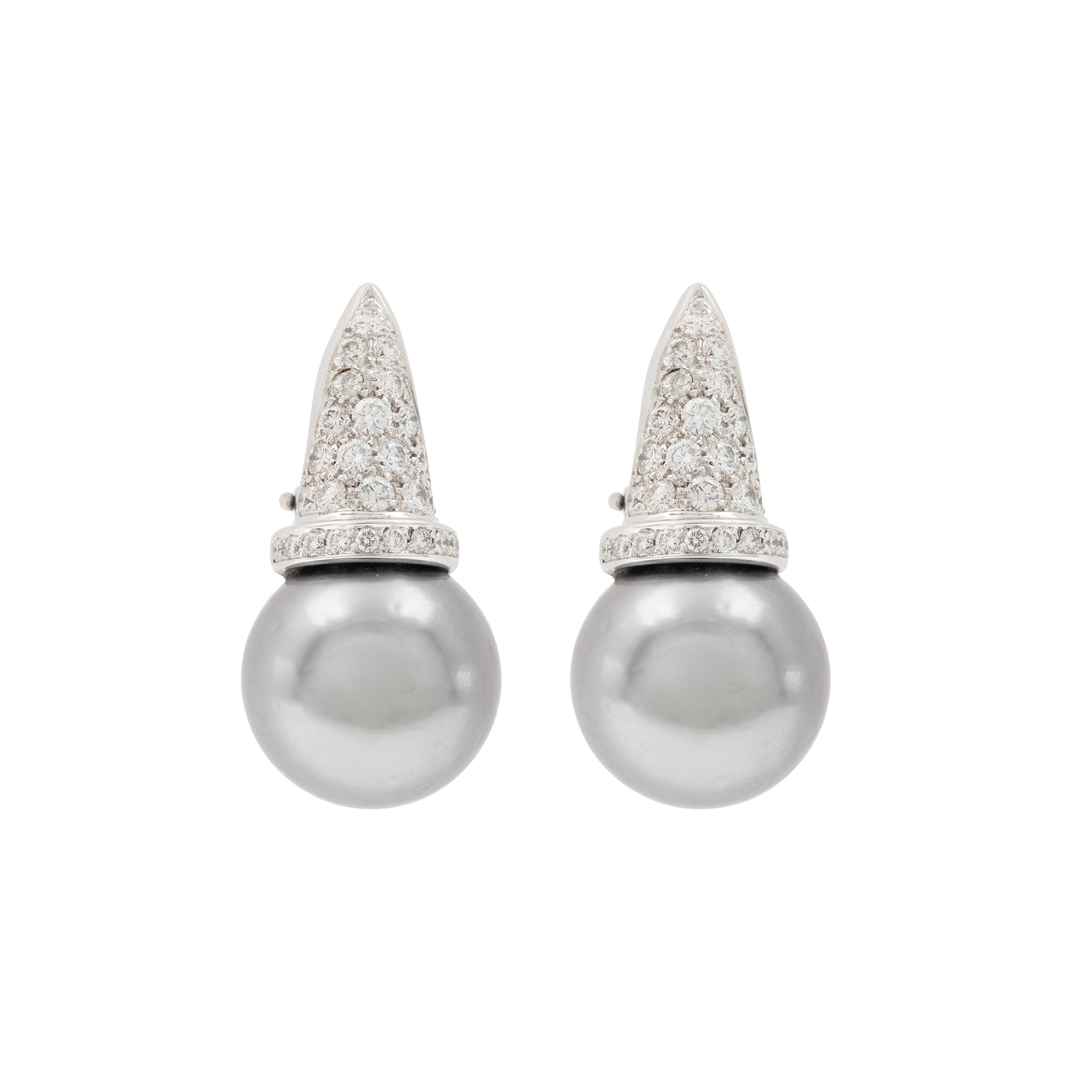 18kt white gold with Tahitian pearls and diamonds pendant earrings