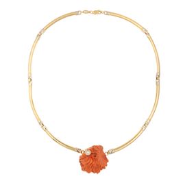 18kt yellow and white gold and sculpted coral necklace