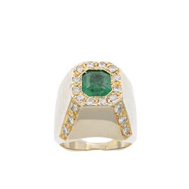 octagonal stepped cut natural emerald circa 2 ct and brilliant cut diamonds circa 0.70 ct, size 16