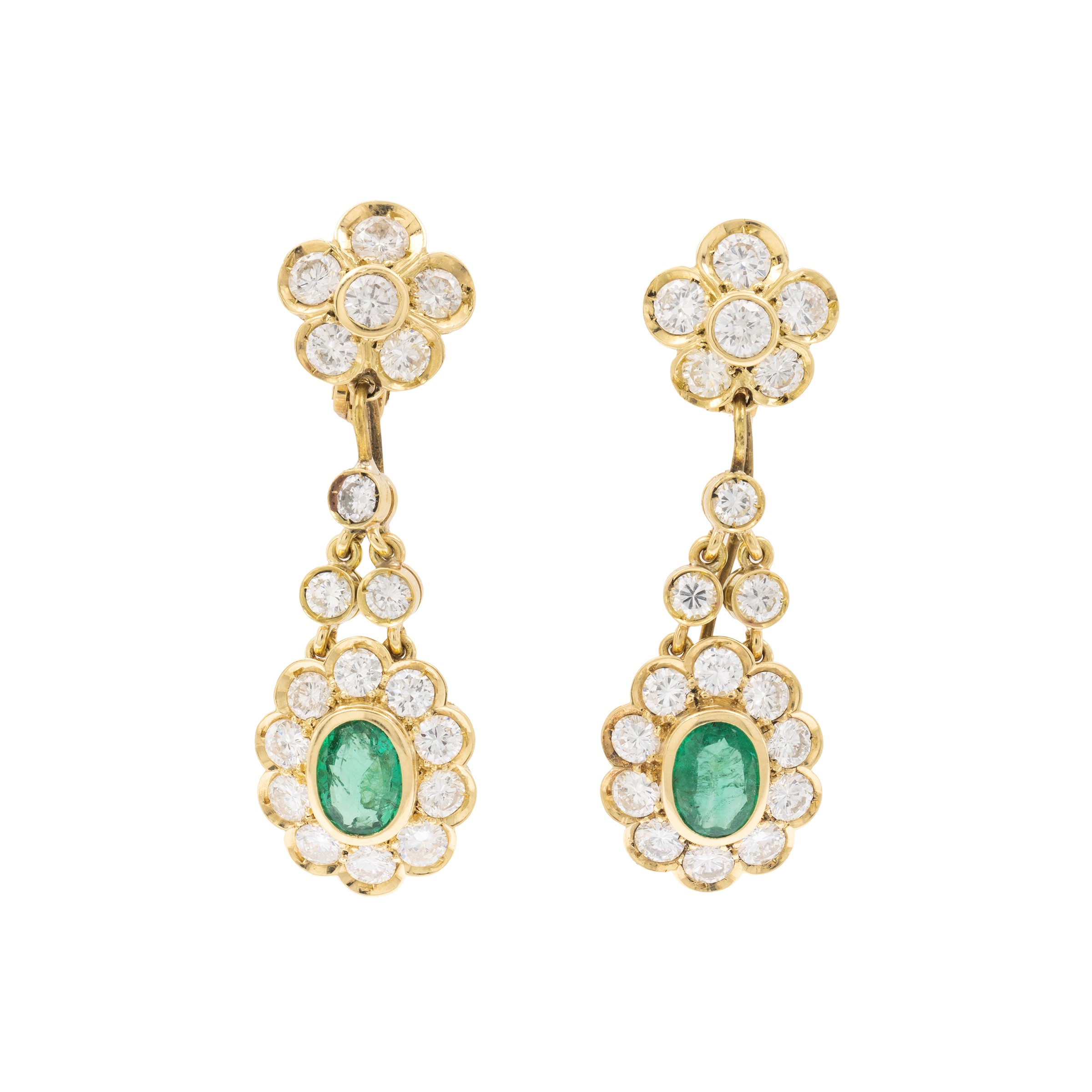 18kt yellow gold, emeralds and diamonds pendant earrings