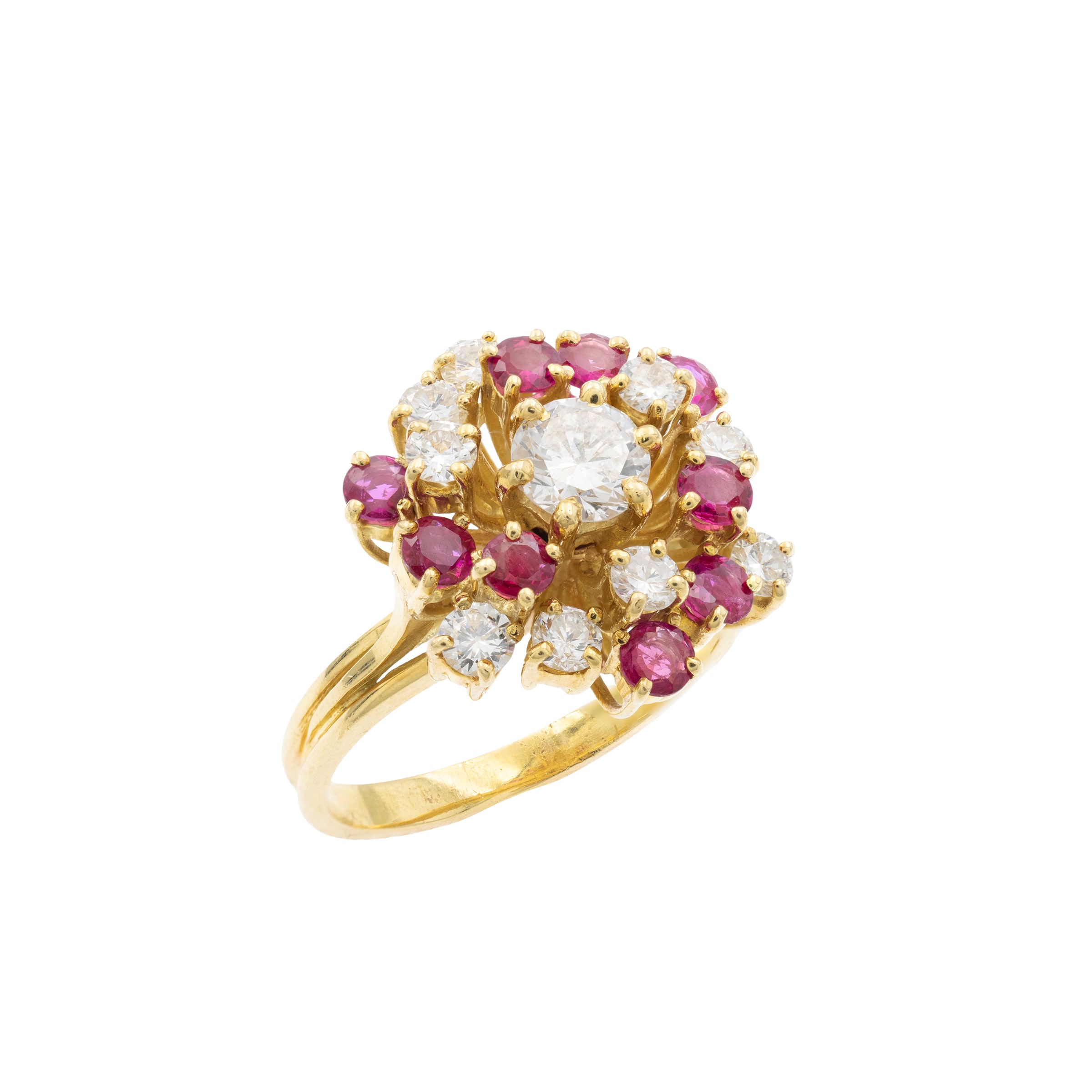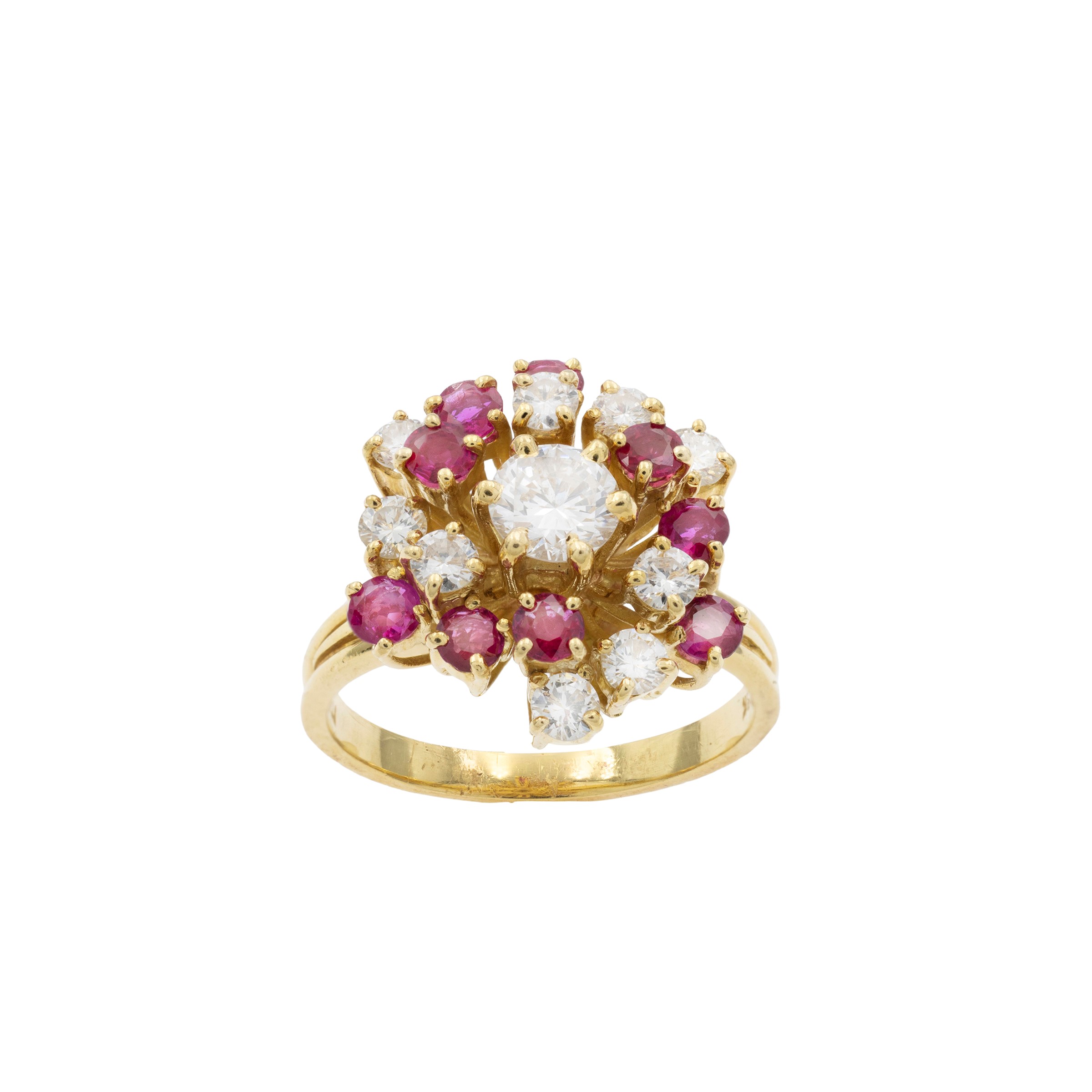 brilliant cut diamonds circa 1 ct, round rubies circa 0.45 ct, size 11