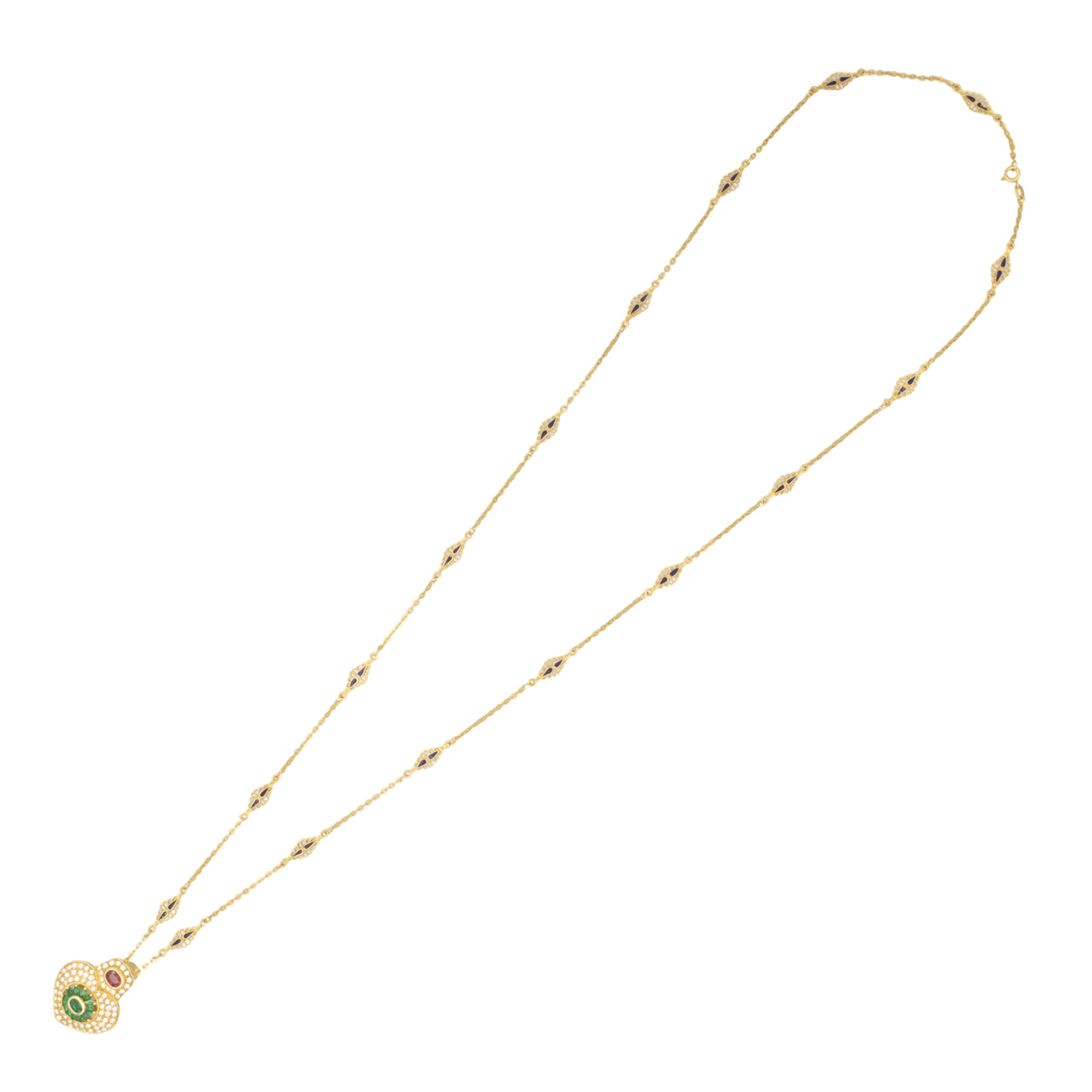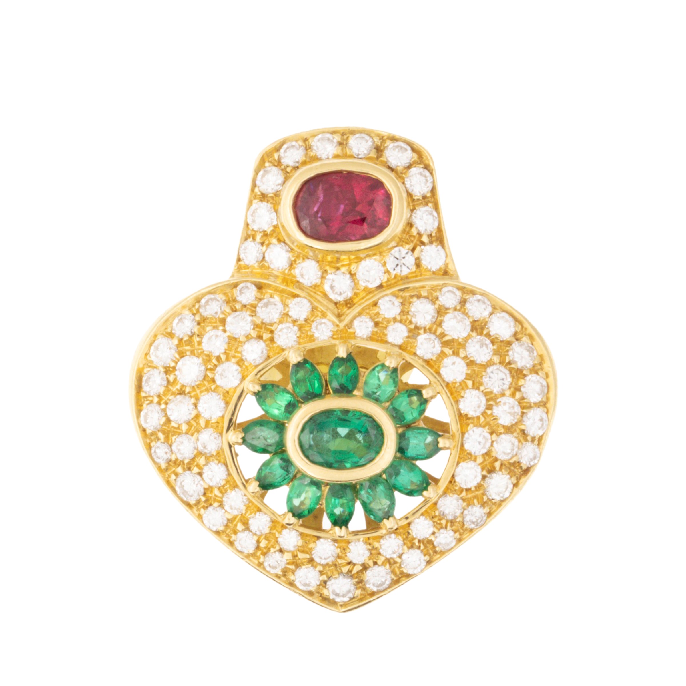 18kt yellow gold, ruby, emeralds and diamonds Removable pendant