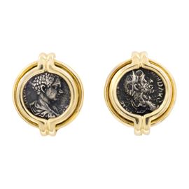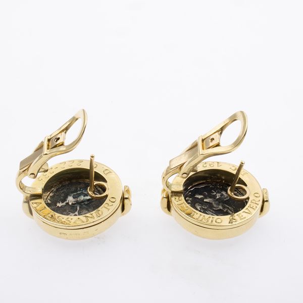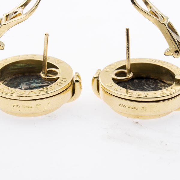 in 18kt yellow gold with silver coins, diameter 2.1 cm. complete box