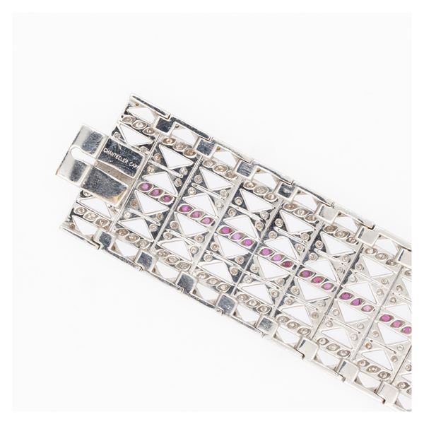 weight 91 gr.in 18kt white gold, brilliant-cut diamonds circa 6 ct and round rubies, length 18 cm. - height 2.5 cm.