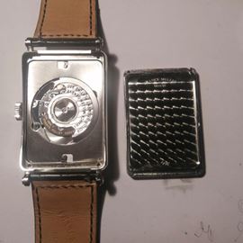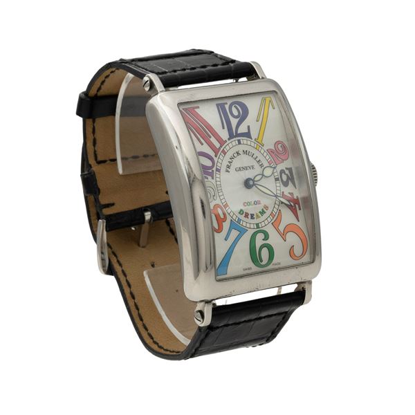 in steel, ref. 1200 SC, case 32.3x45 mm. silver dial with different colored Arabic numerals, mechanical movement with automatic winding, F.M. caliber 2800 V, strap with original steel buckle, complete with box and papers, signed case, dial and movement