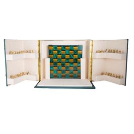 net weight 500 gr.composed of boards and thirty-two pieces made of yellow gold, polychrome enamel, brilliant-cut diamonds and cultured pearls, complete with original fabric box
