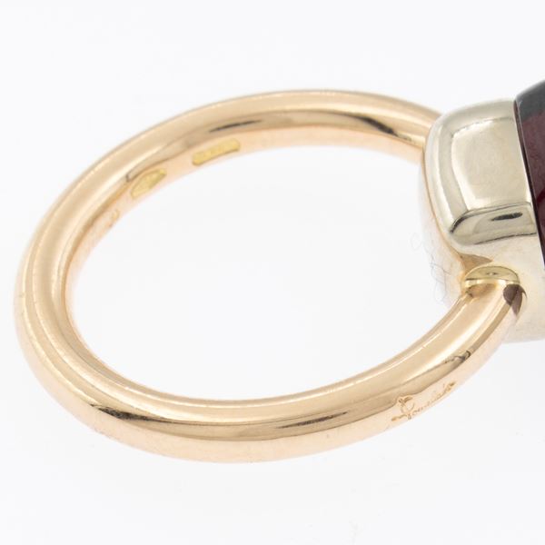 in 18kt two-color gold and faceted garnet, size 13, complete with box