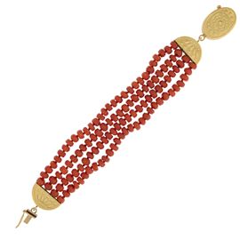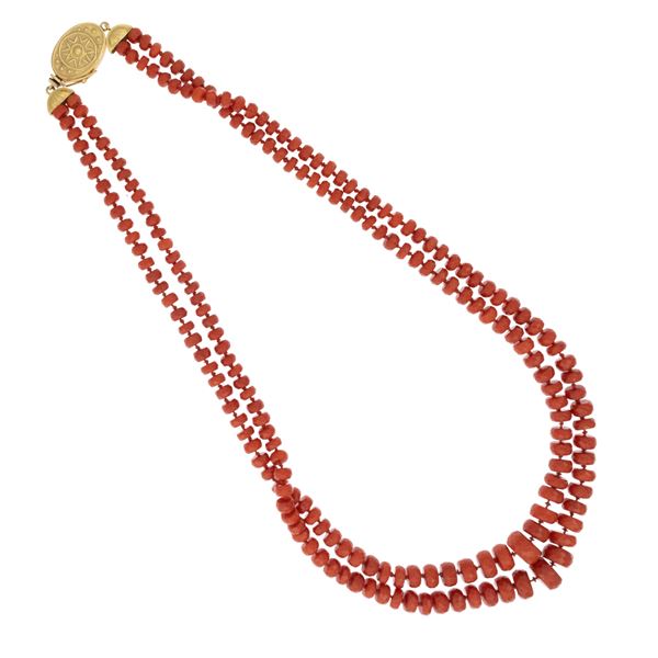 necklace with two strands of faceted barrels arranged in gradations, length 60 cm. - four-strand bracelet length 19 cm.