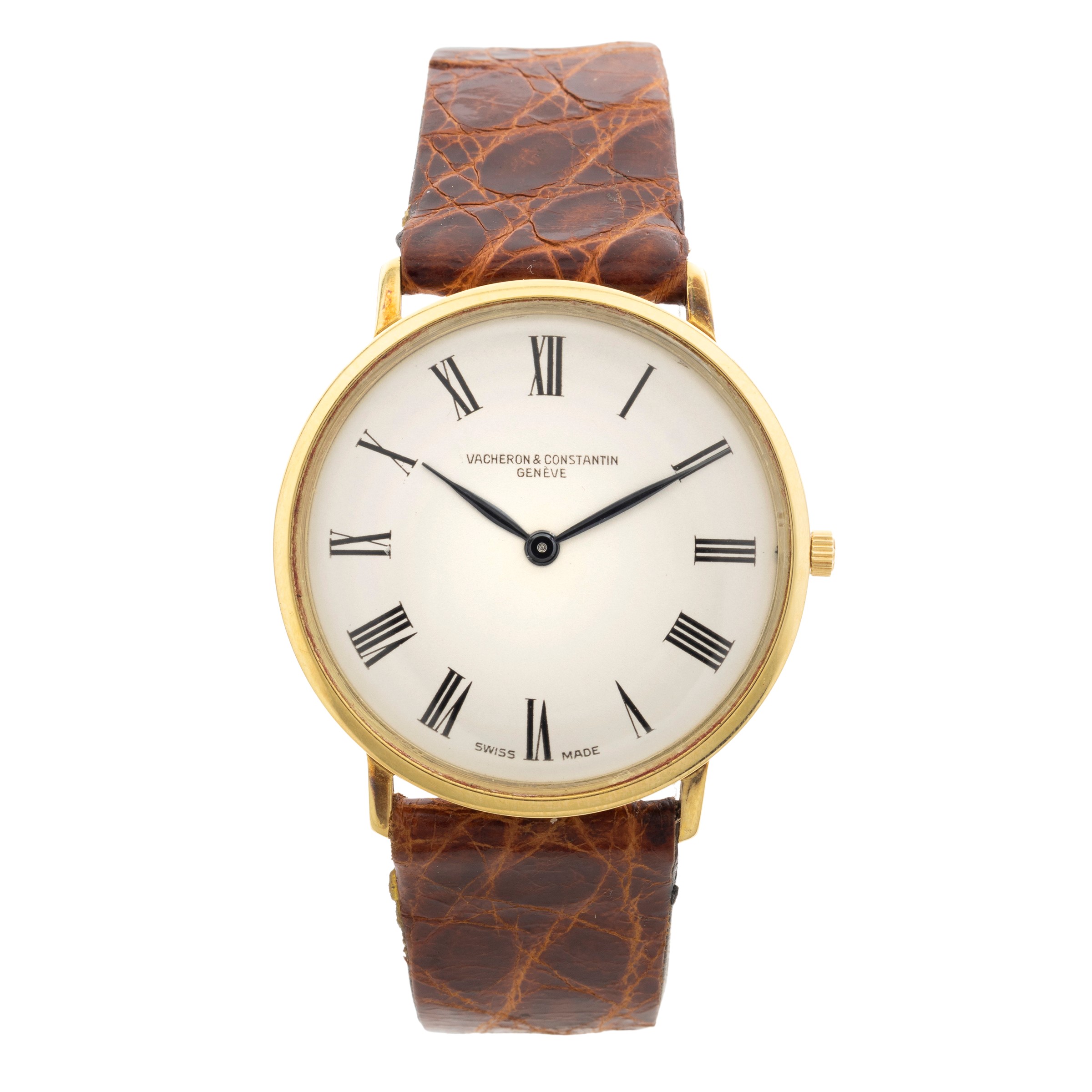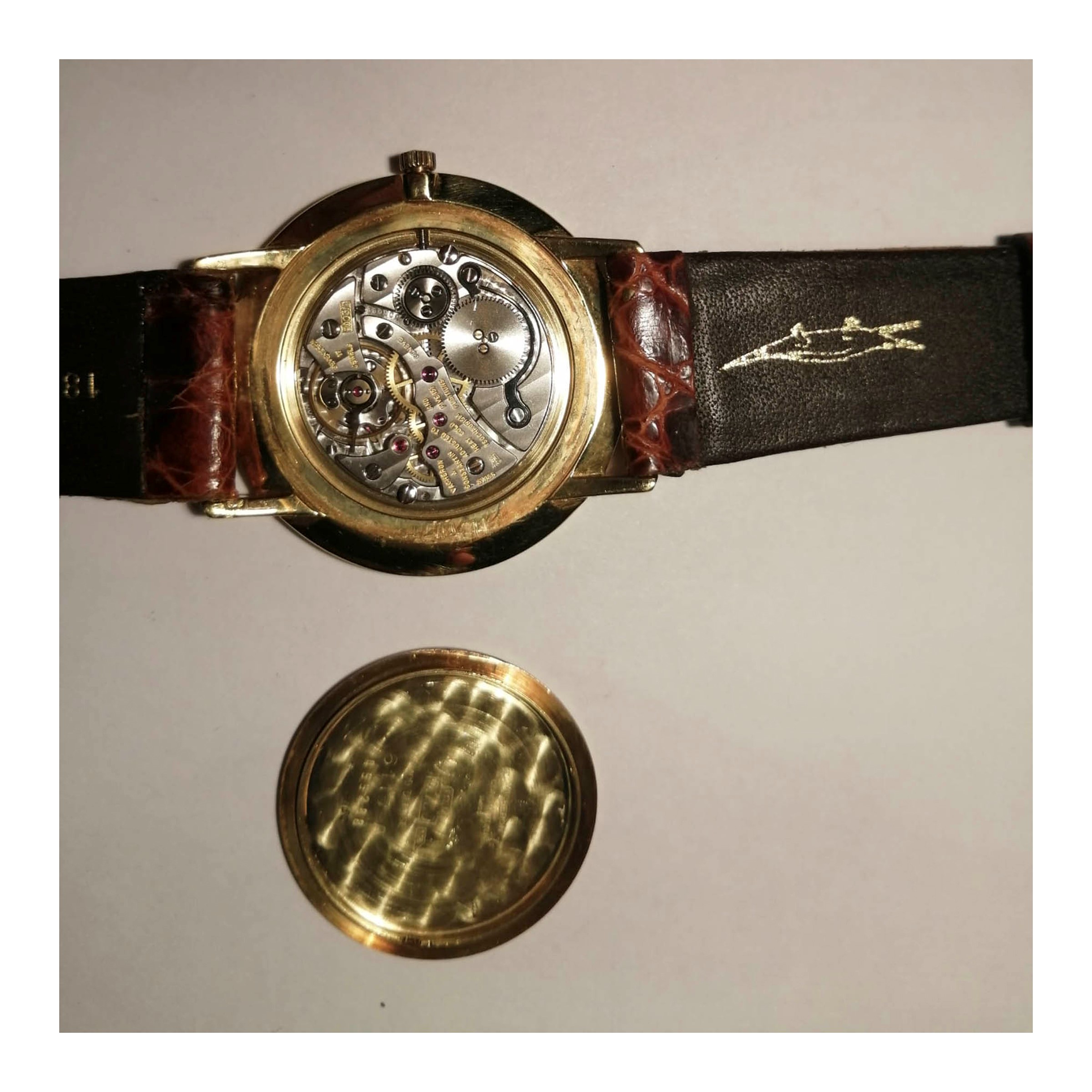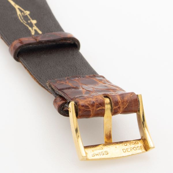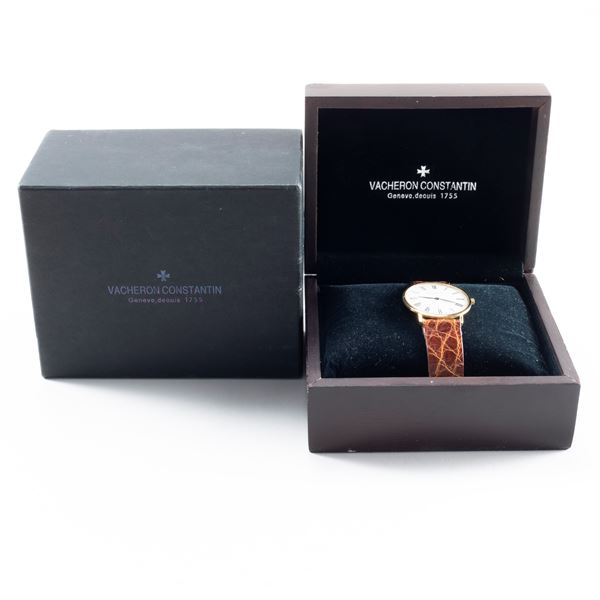 in 18kt yellow gold, ref. 6115A - 499288, ultra thin case diameter 33 mm. - n. 499288, white dial with Roman numerals, mechanical movement with manual winding, caliber 1003/1, strap with 18kt yellow gold buckle, signed case, dial and movement, complete with archive extract and box