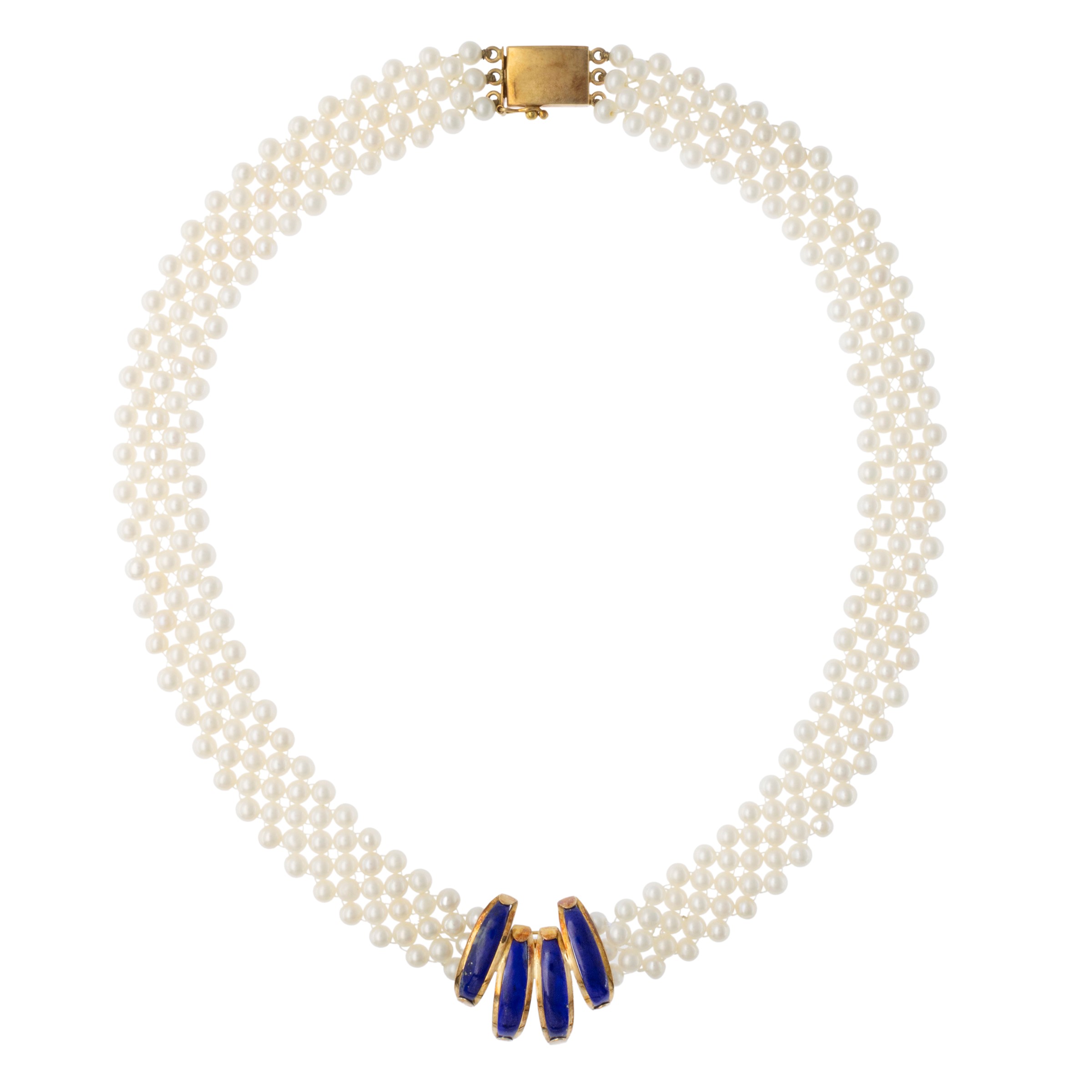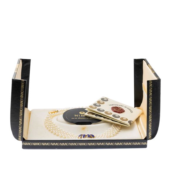 weight 42 gr.circa 4 mm., central and closure in 18kt yellow gold and lapislazuli, length 45 cm. Complete with box and guarantee