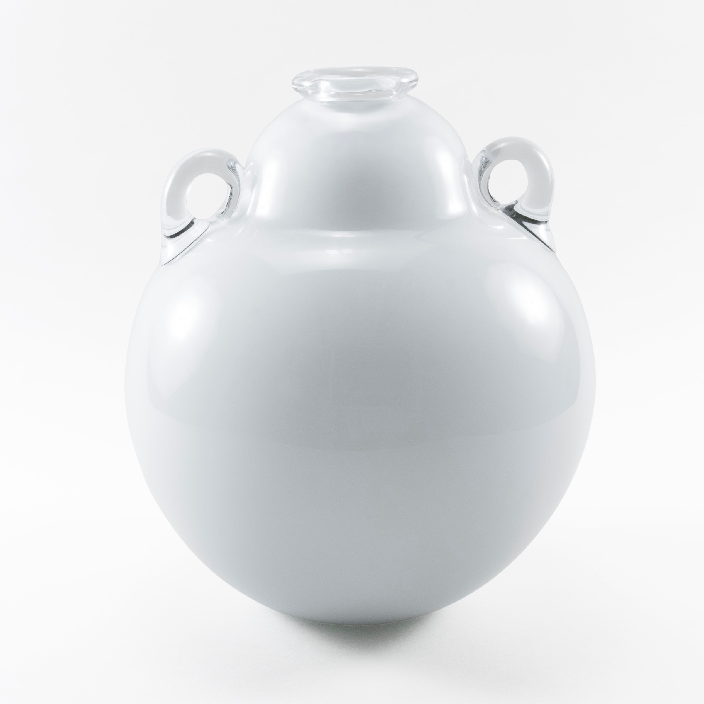 h. 33cm.large vase in transparent glass and milky glass, acid signature, slight wears