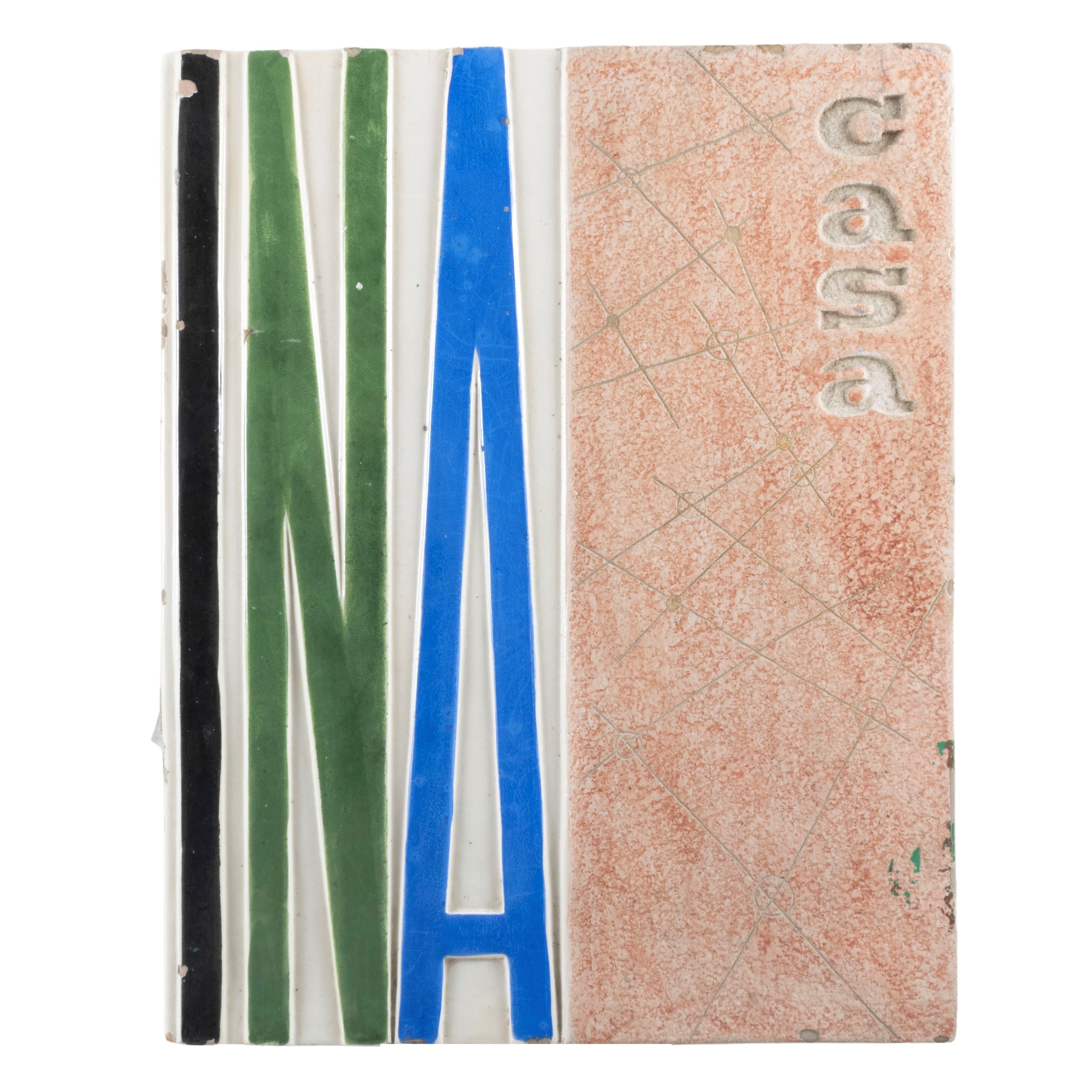 39x31 cm.polychrome ceramic plaque, signed, defects