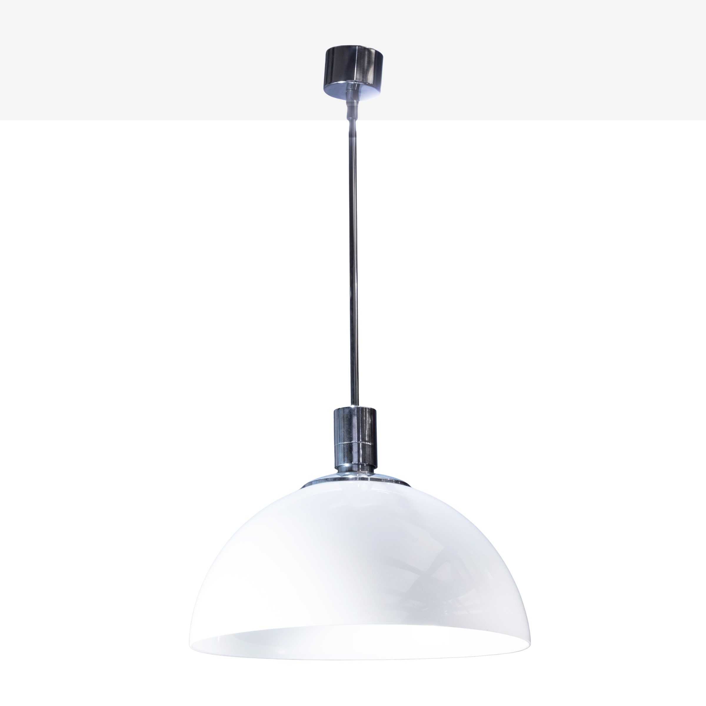 h. 88 cm.AM/AS series suspension lamp in chromed metal and opal glass.