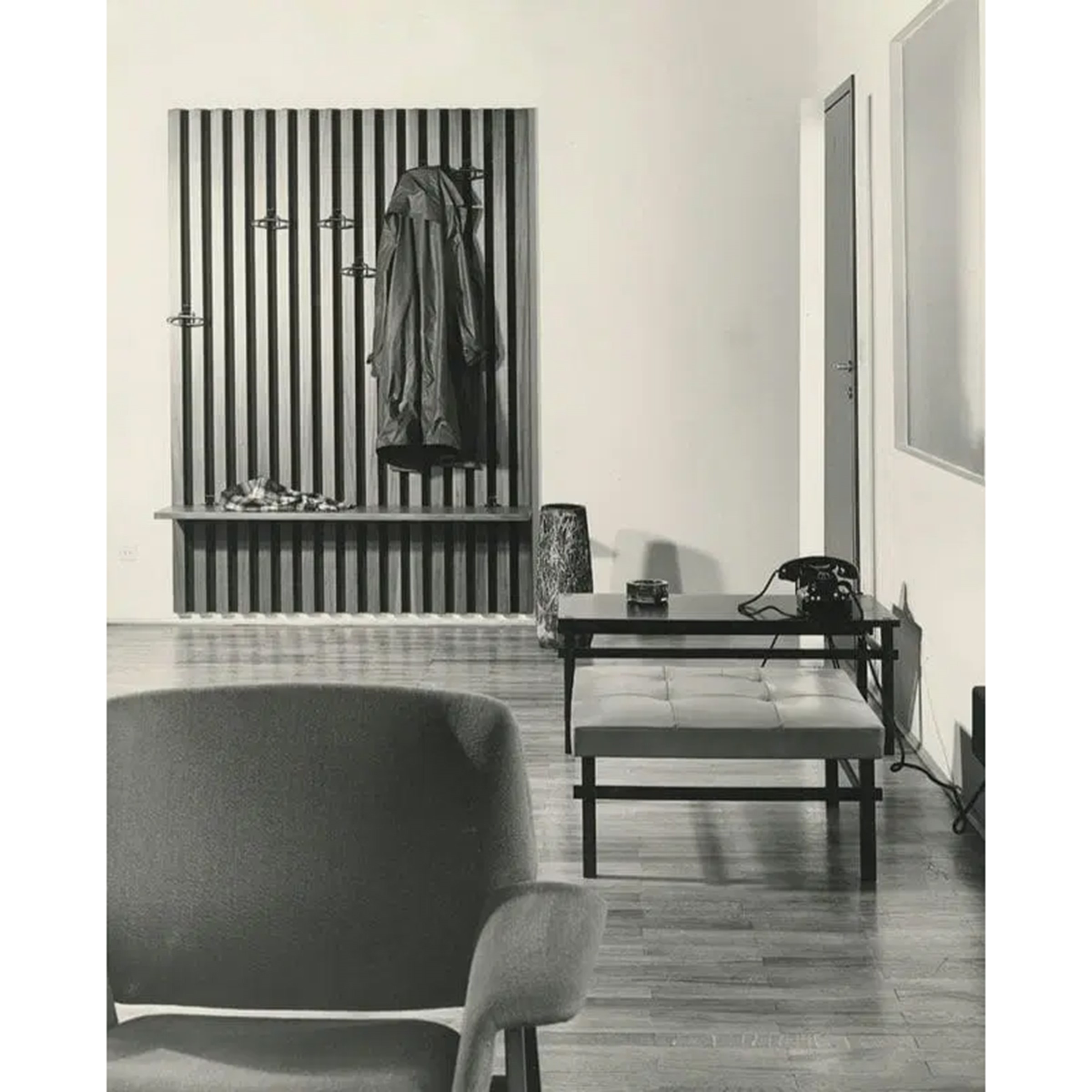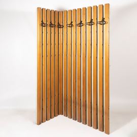Corner wall coat hanger in wood, fabric and metal, slight wears
