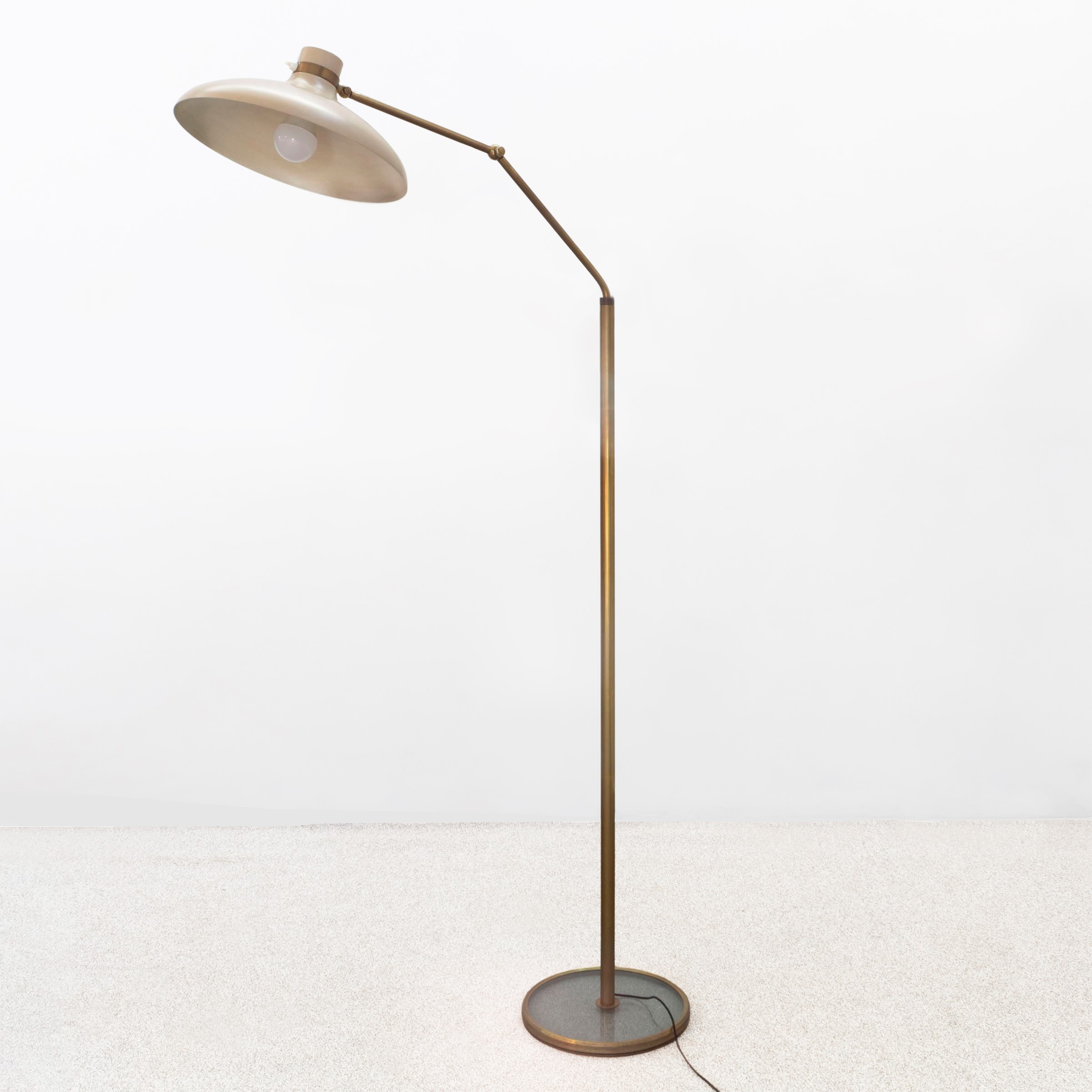 extensible and adjustable floor lamp 1967 mod. in brass, lacquered metal and transparent glass, slight wears Literature: Quaderni di Fontana Arte; U. La Pietra, Gio Ponti L’arte si in amora dell’industria, Rizzoli, 2009, pag. 365
