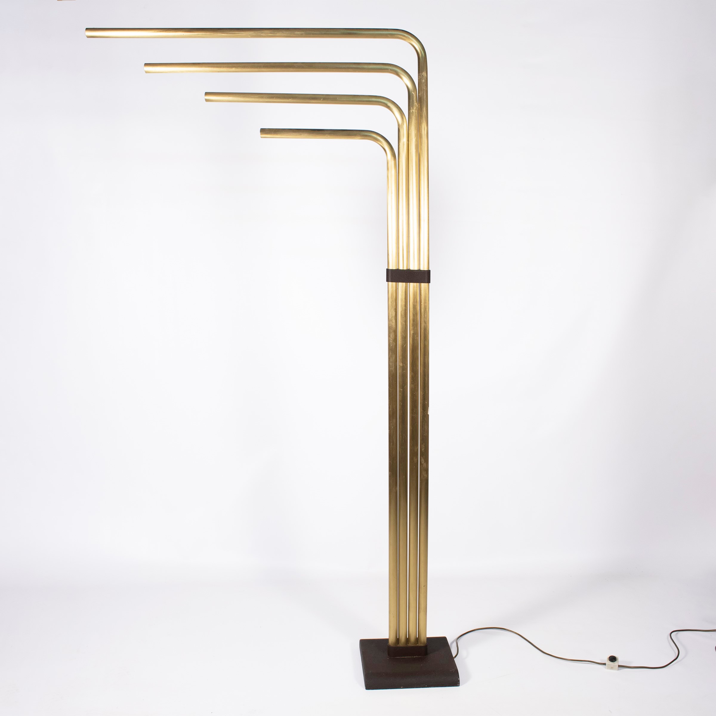 h. 205cm.Brass floor lamp with cast iron base, slight wears
