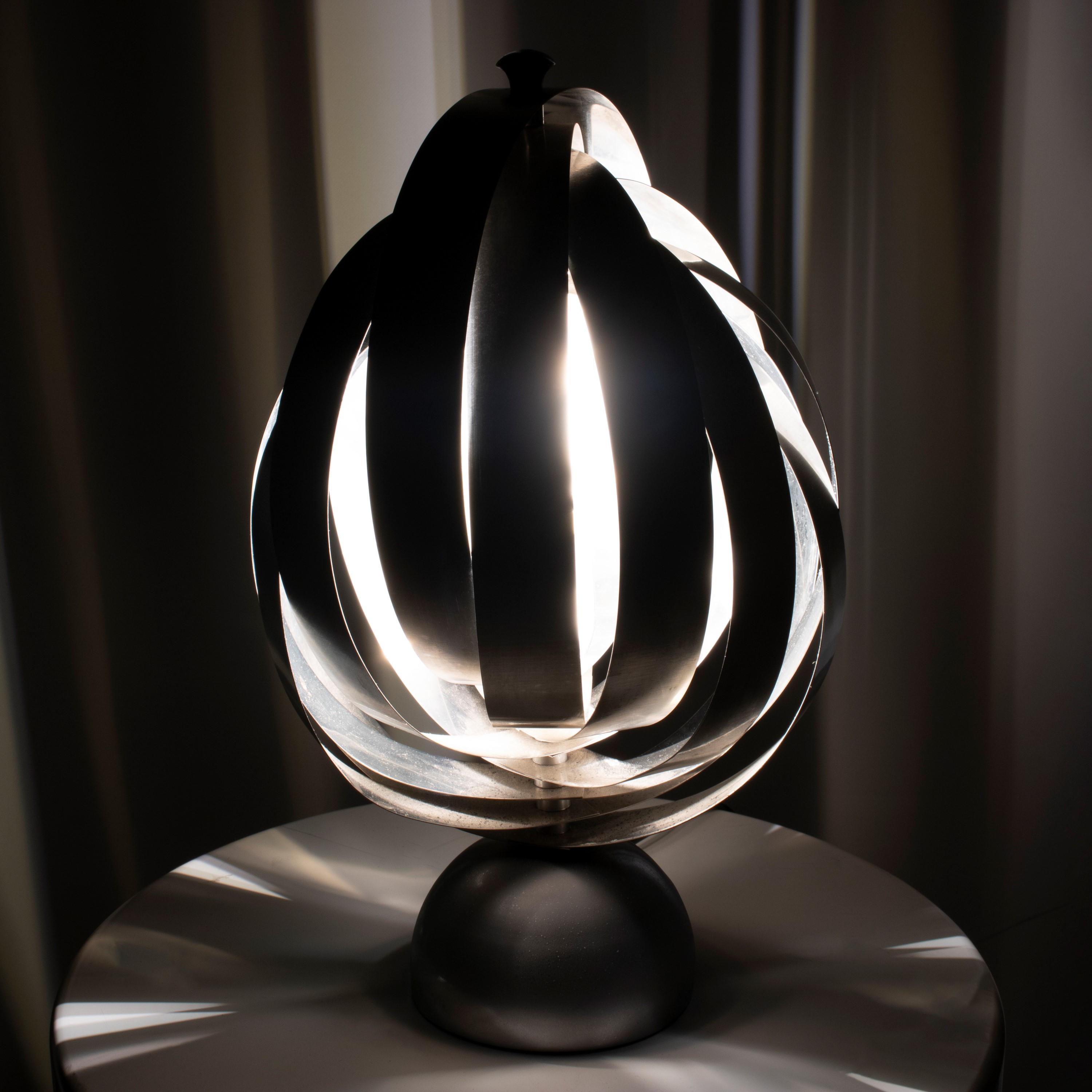 h. 40cm.Moon mod. table lamp in chromed metal and steel, slight wears