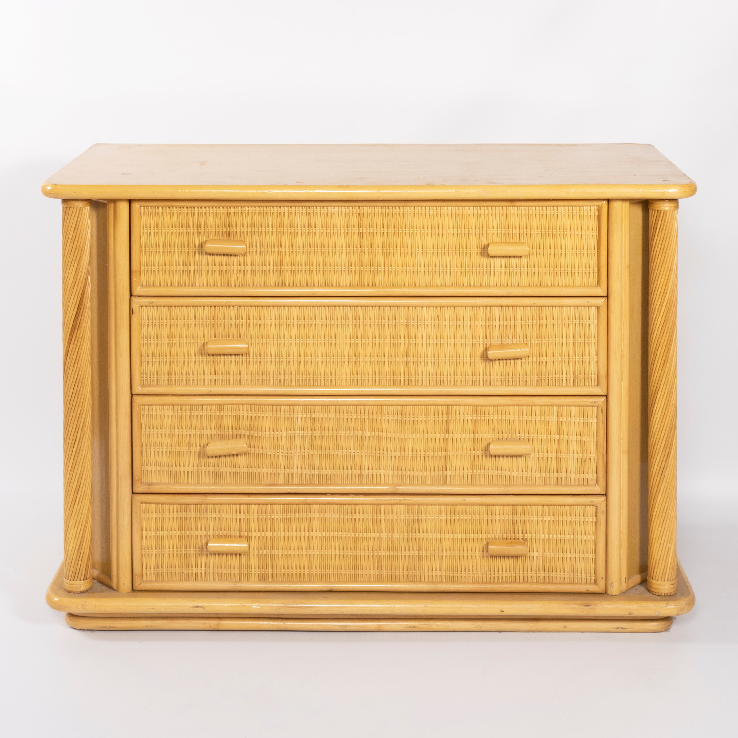 76x110x48 cm.bamboo and wicker chest of drawers, slight wears