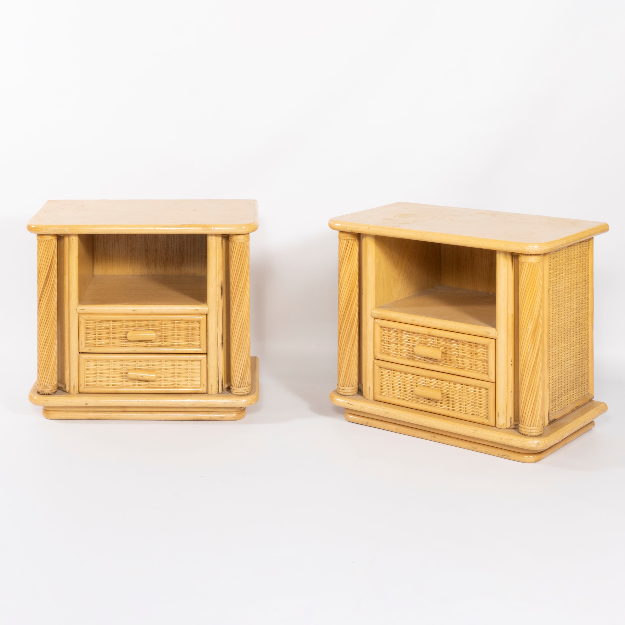 50x54x34 cm.Pair of bamboo and wicker bedside tables, slight wears