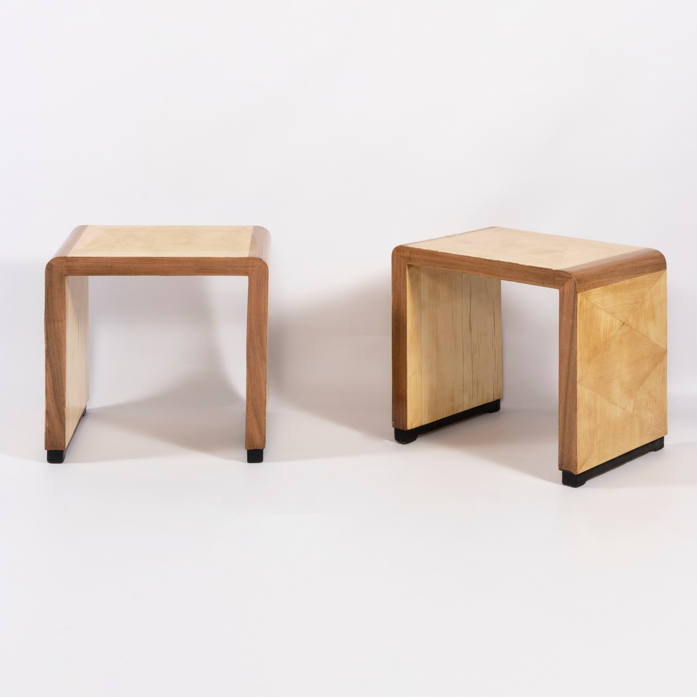 Pair of stools in wood and painted wood, slight wears