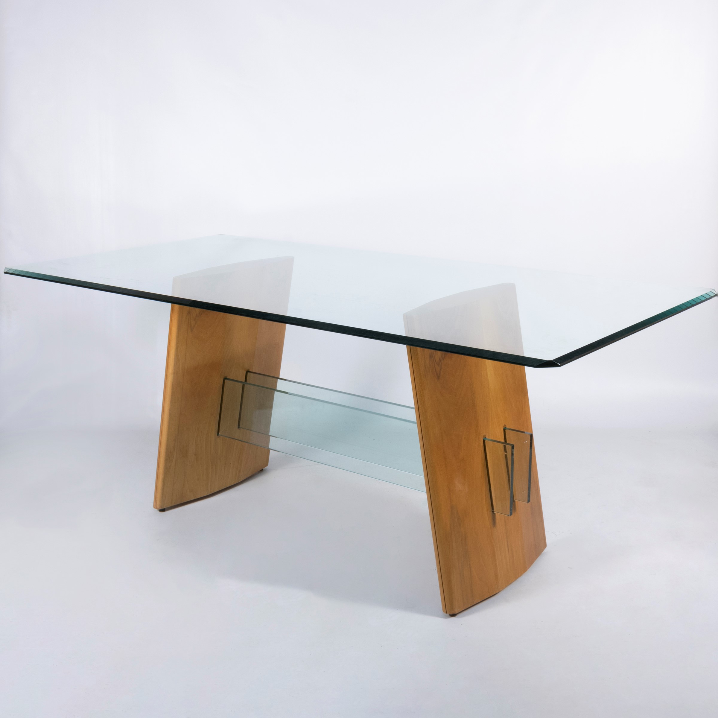 70x175x90 cm.dining table in wood and transparent glass, slight defects