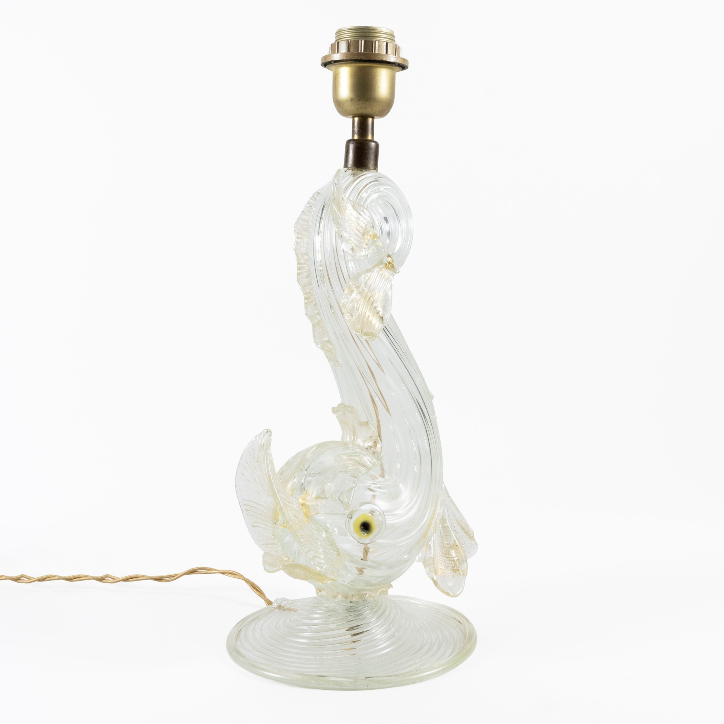 h. 40cm.Table lamp in blown glass and gold leaf, slight wears